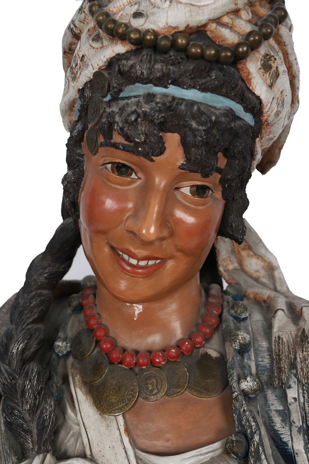 Lot 493 19TH-CENTURY GOLDSCHEIDER GLAZED CERAMIC POLYCHROME BUST
