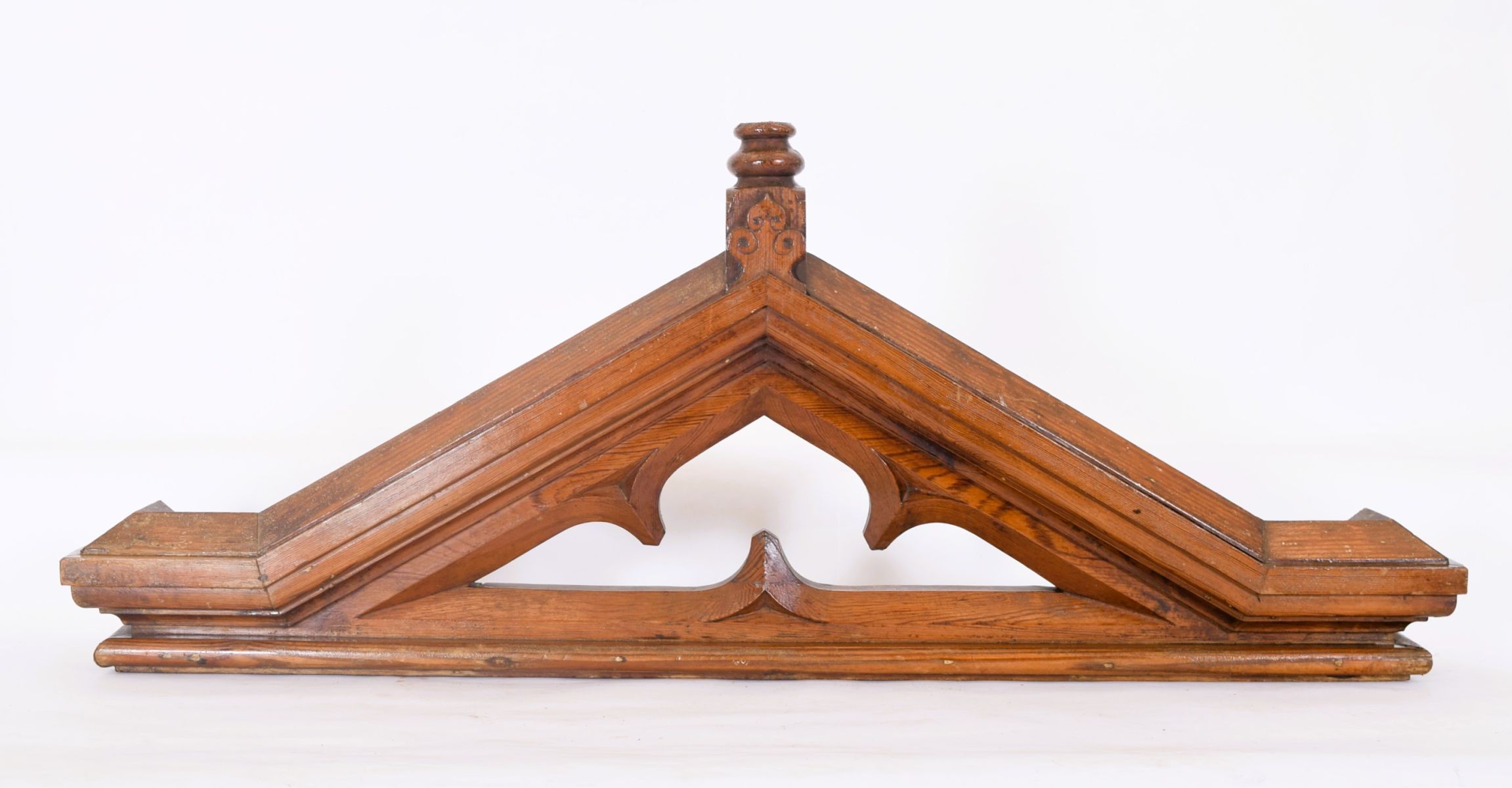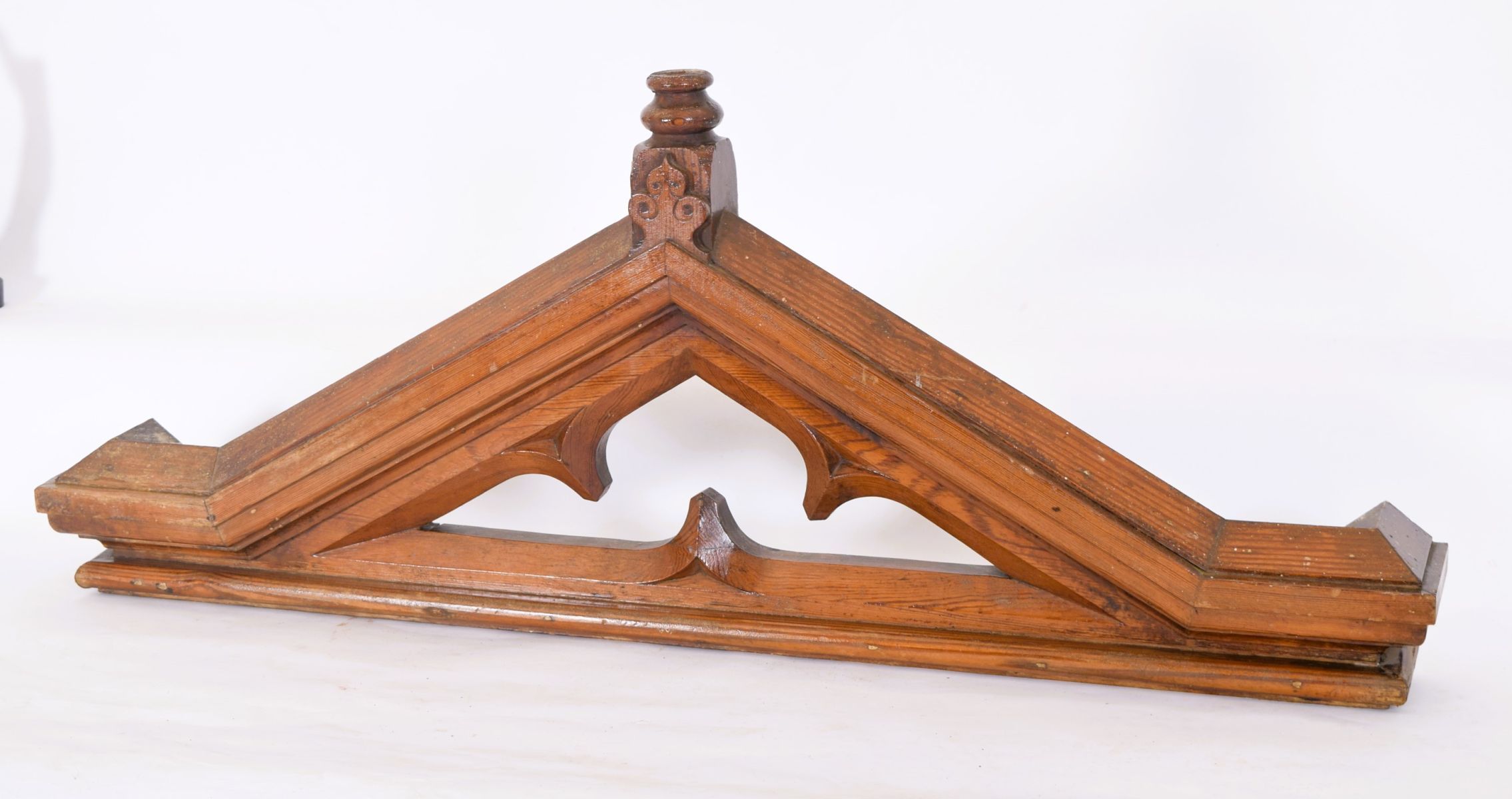 19th-century Gothic-style pitch pine overdoor panel with carved architectural detailing.