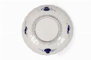 circular serpentine form, central field depicting a still life of flowers, surrounded by crescent-shaped alternating ornithological and botanical cartouches.