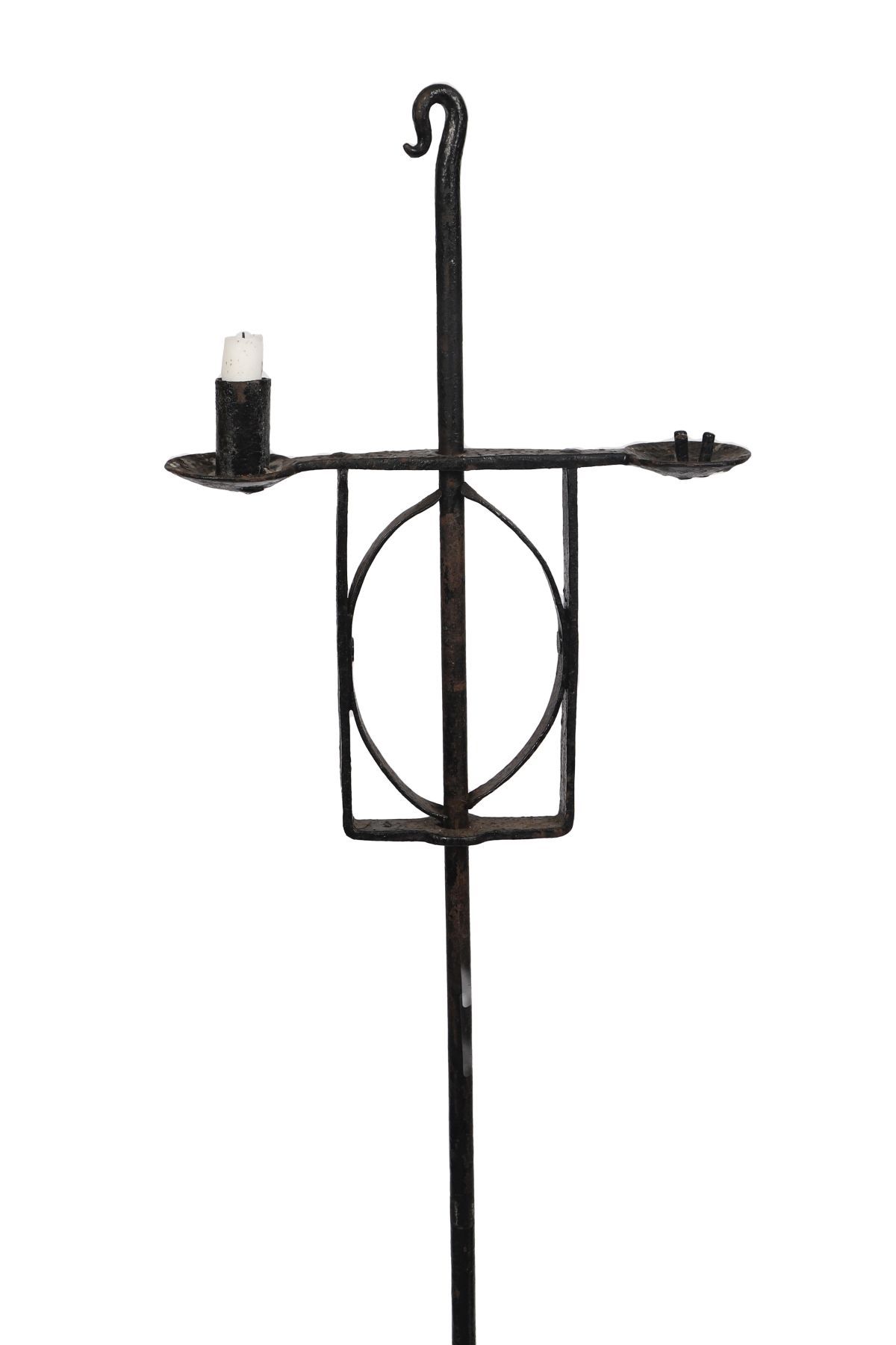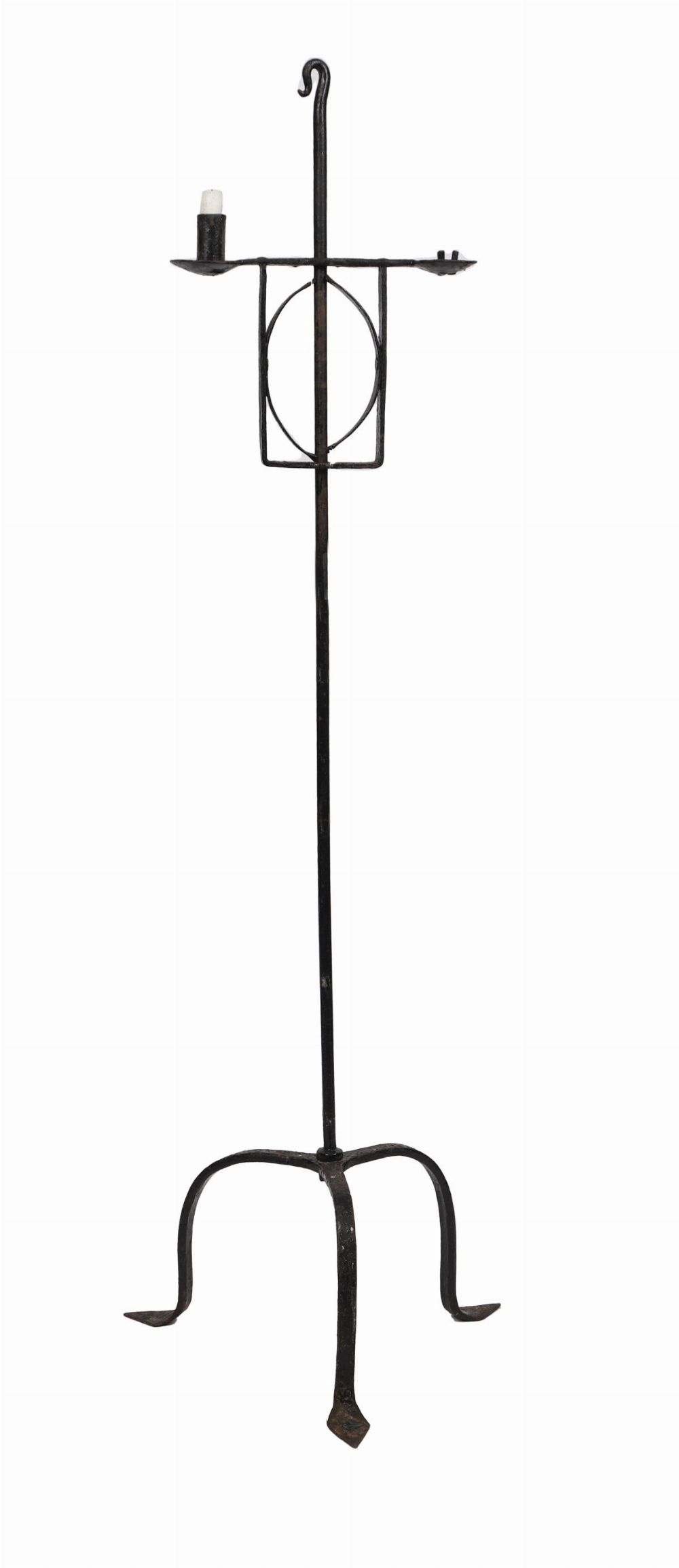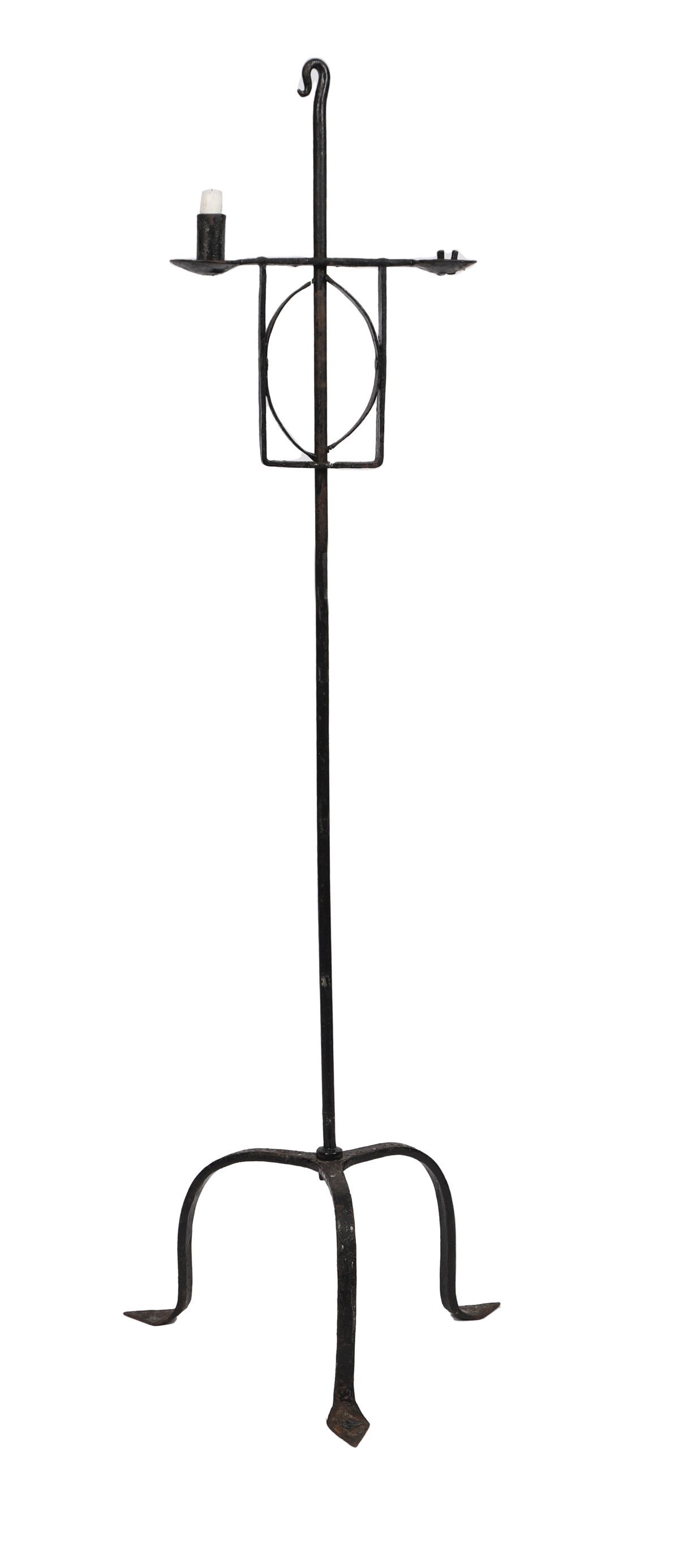 Lot 174 19TH-CENTURY IRISH VERNACULAR IRON FLOOR-STANDING DOUBLE CANDLE HOLDER