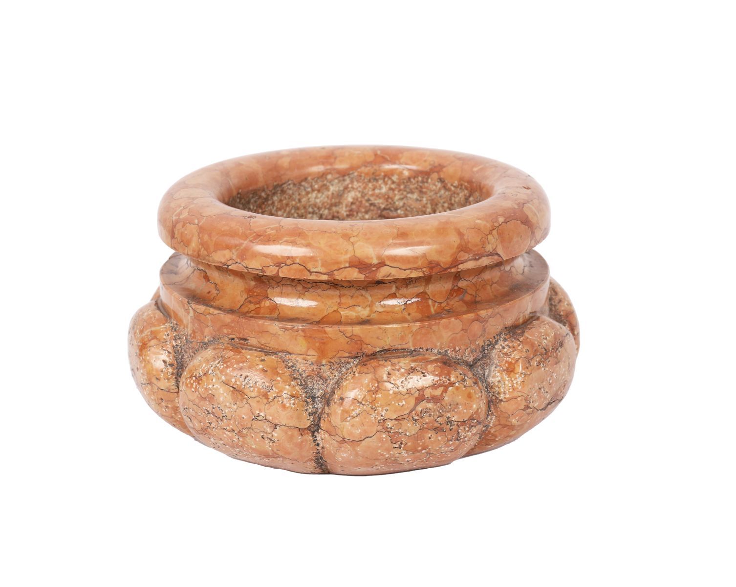 A fine 19th-century Italian mortar carved from richly figured Rosso Verona marble, of circular form with a thick rounded rim and bulbous lobed base.