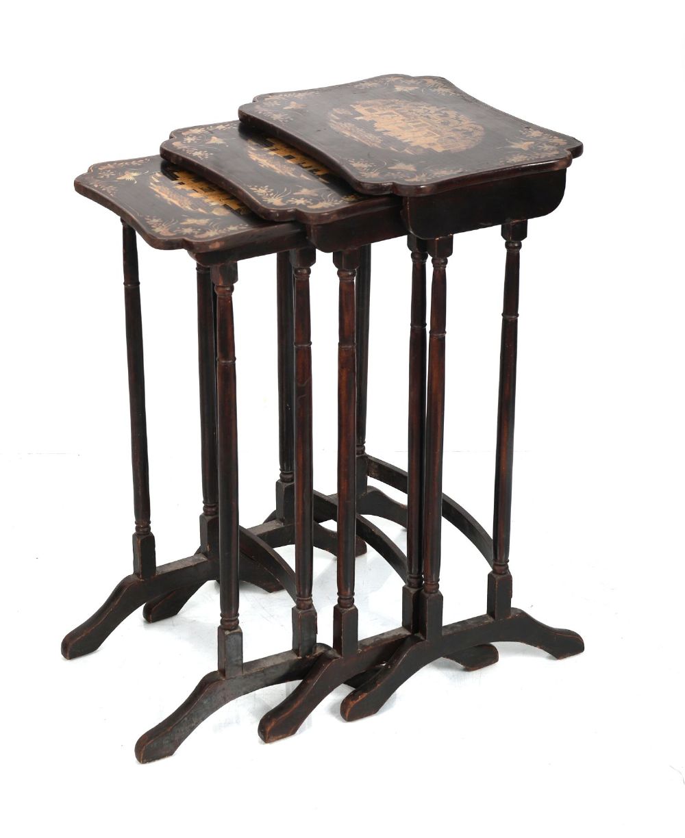 Lot 1025 19TH-CENTURY LACQUERED NEST OF THREE TABLES