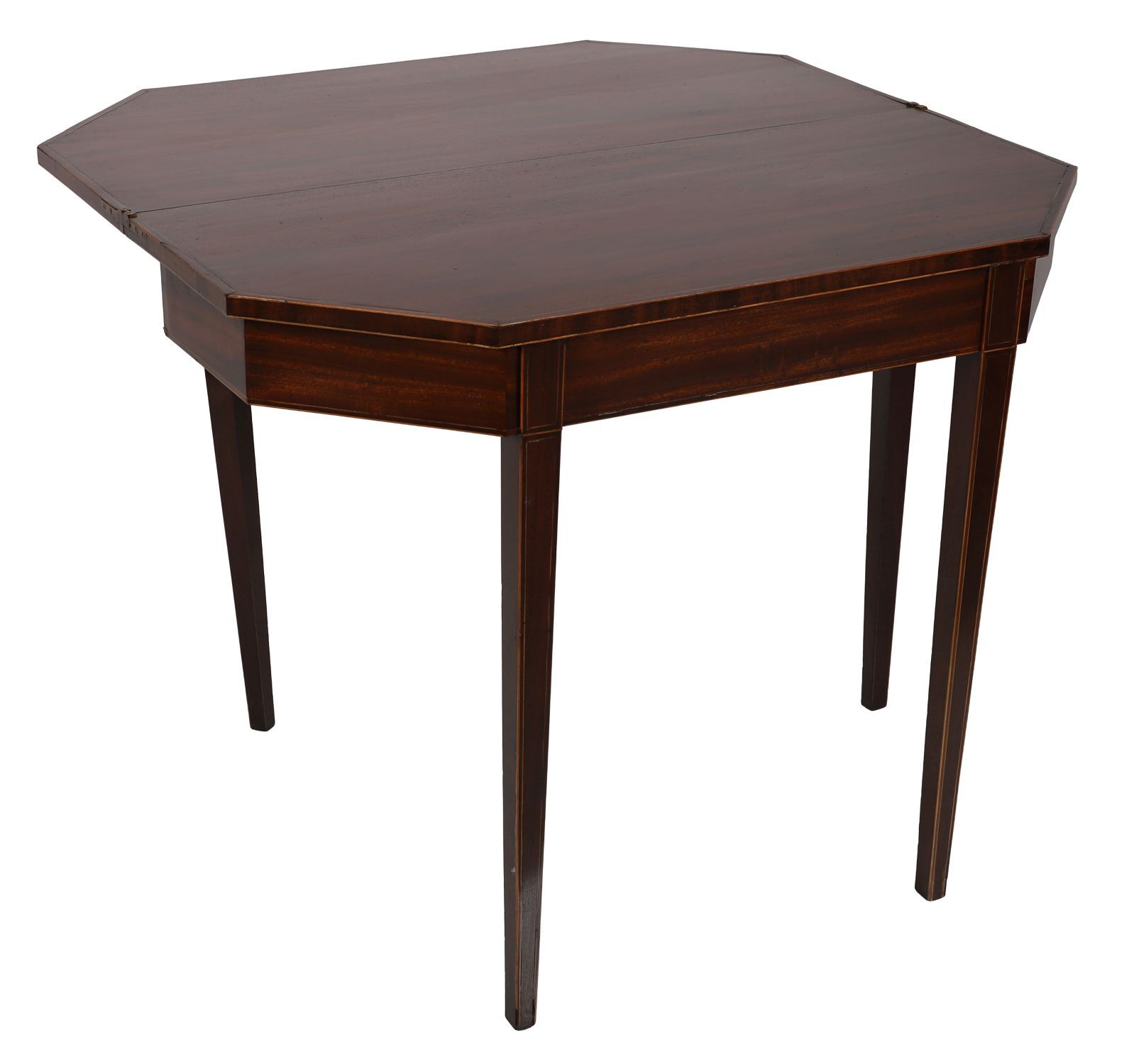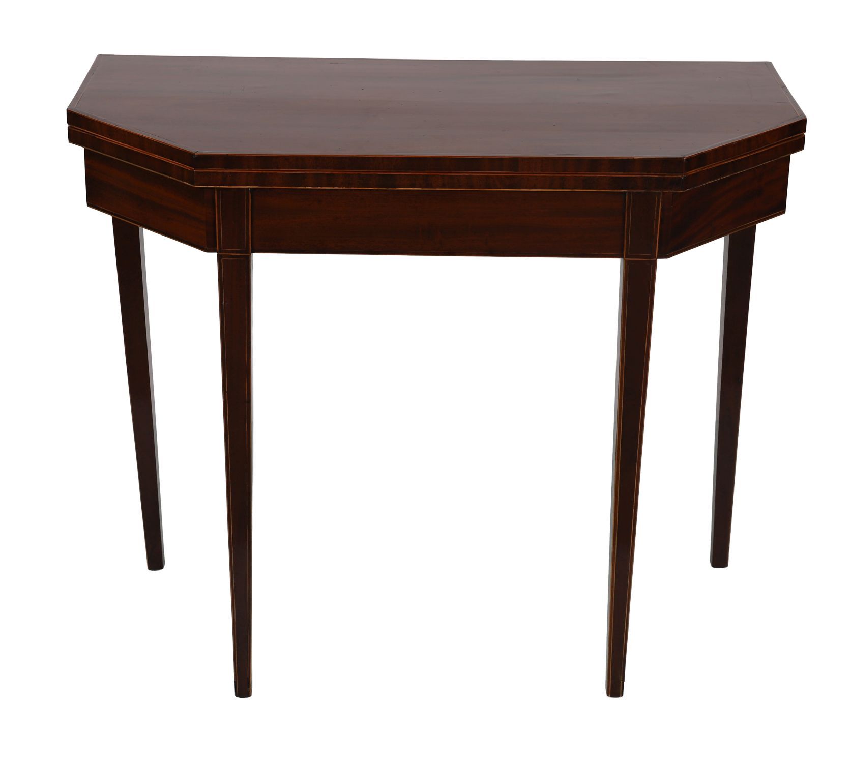 Lot 271 19TH-CENTURY MAHOGANY AND BOXWOOD INLAID FOLDOVER TEA TABLE
