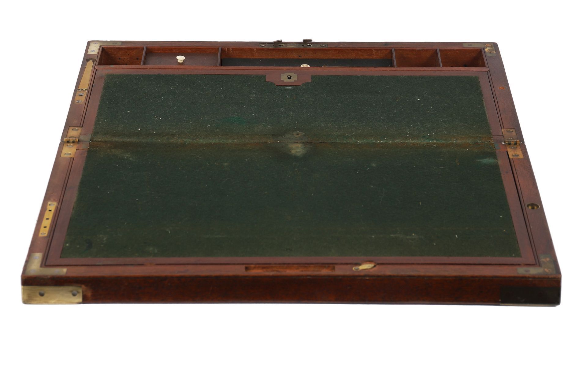 Lot 1183 19TH-CENTURY MAHOGANY CAMPAIGN WRITING SLOPE, BRASS-BOUND, WITH SECRET DRAWERS