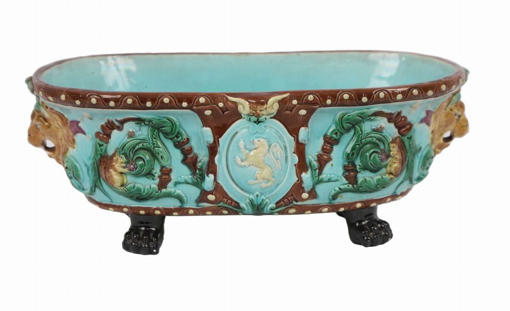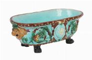 Lot 219 19TH-CENTURY MAJOLICA PLANTER ON FOUR CLAW FEET