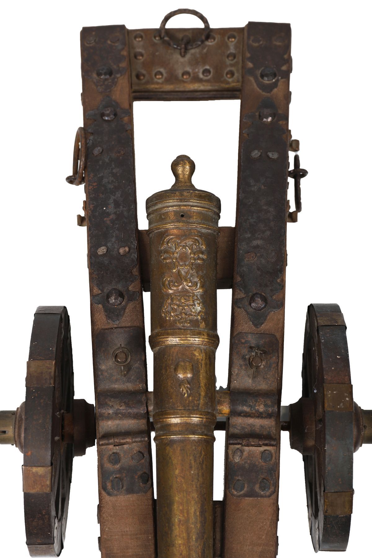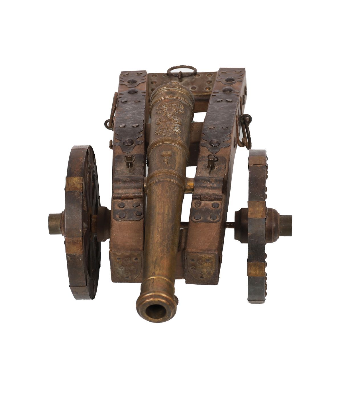 Lot 1183 19TH-CENTURY MODEL OF A CANNON WITH BRASS BARREL ON WOODEN CARRIAGE