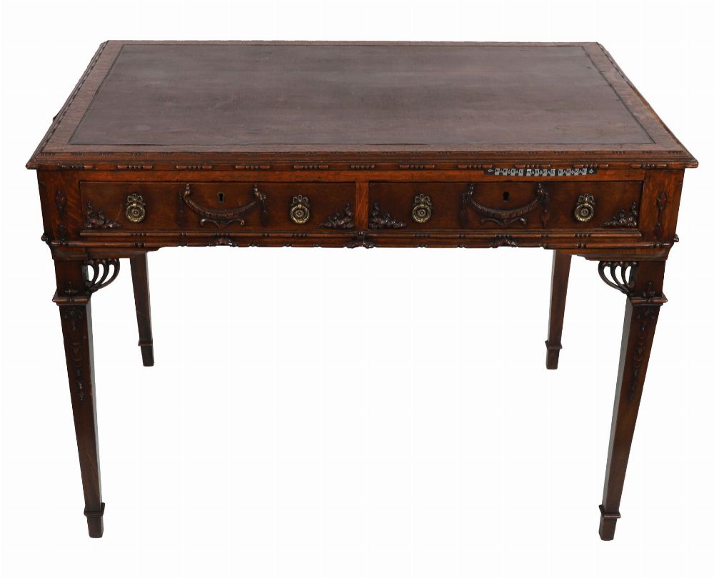 Lot 593 19TH-CENTURY OAK LIBRARY TABLE IN THE ADAM STYLE