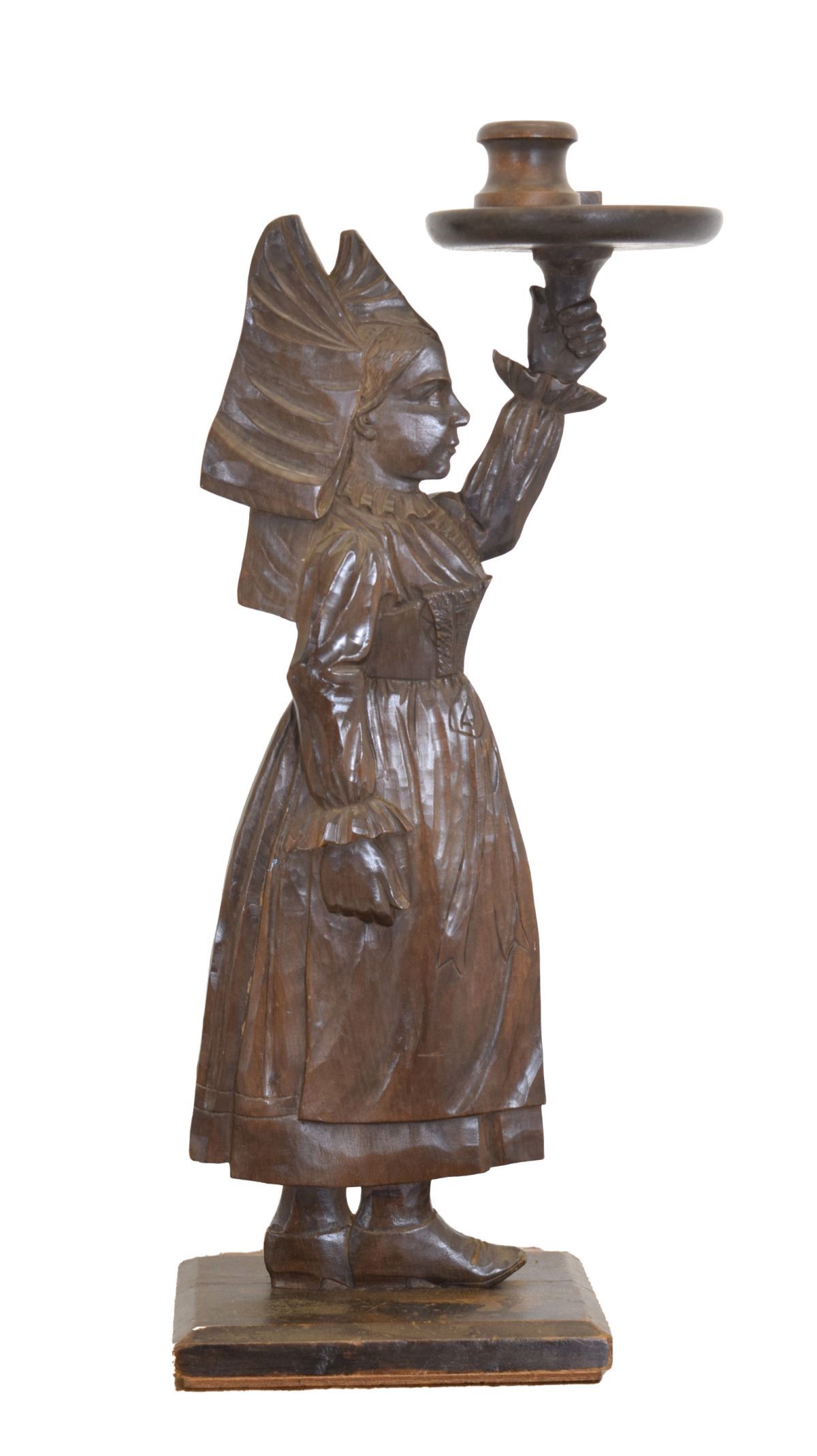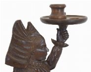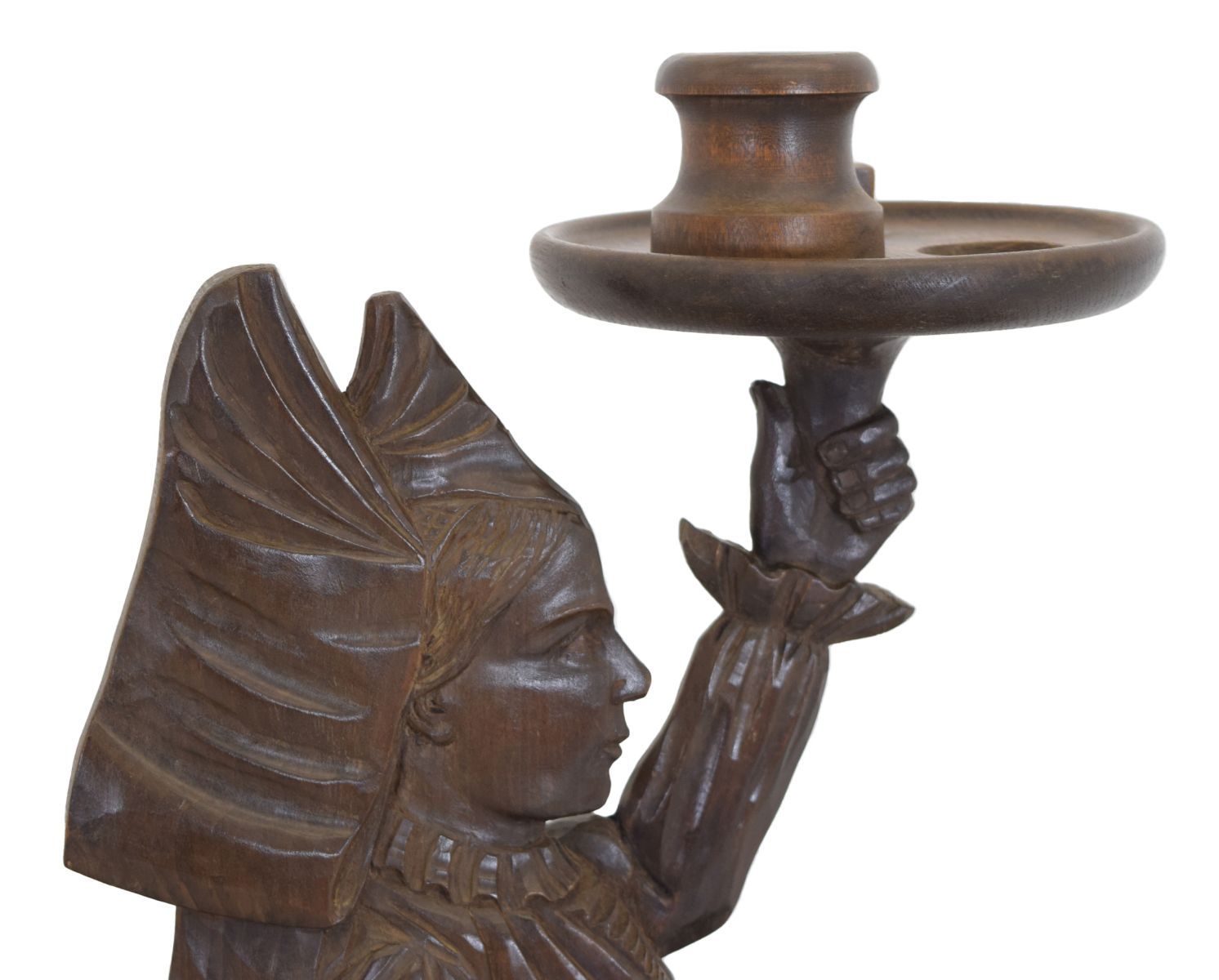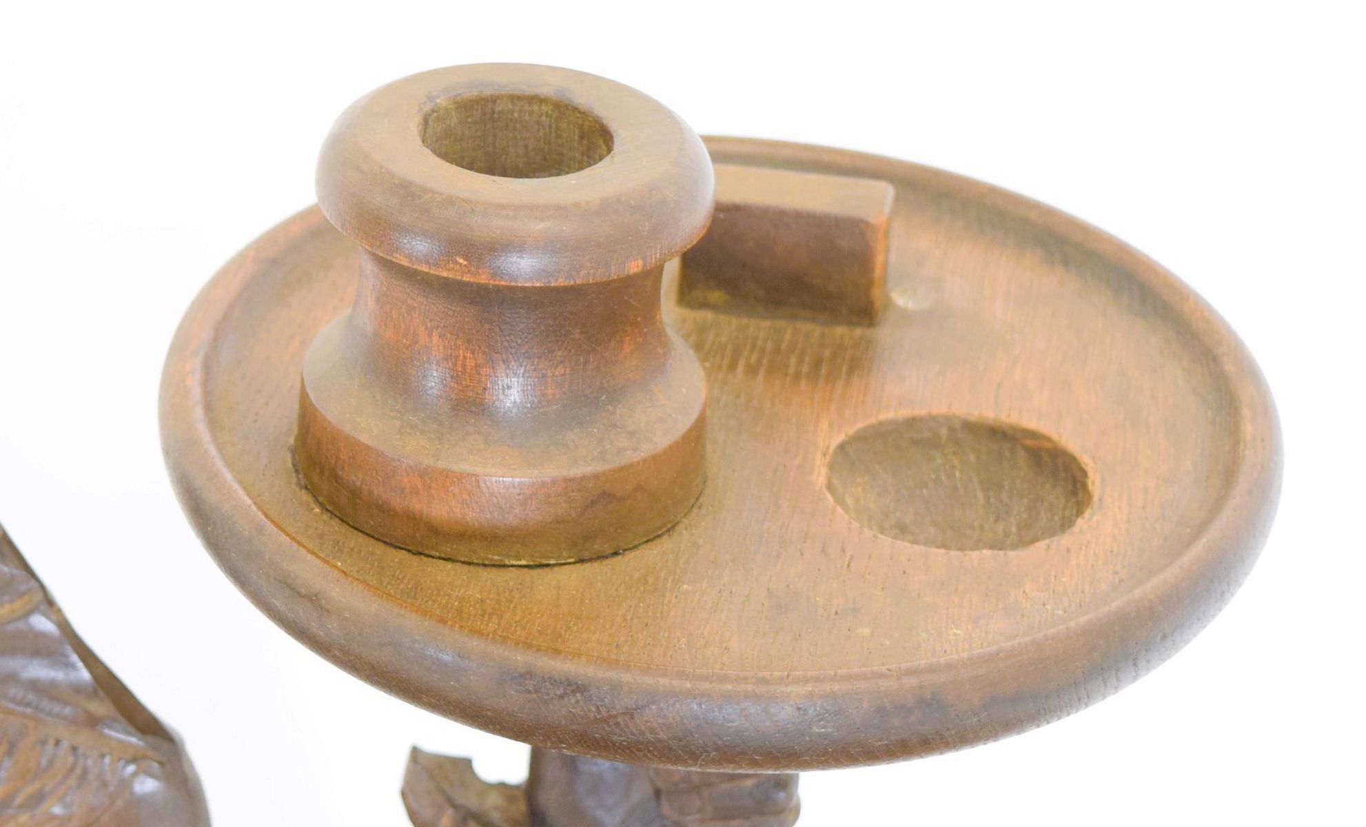 featuring a carved female figure holding a tray; likely used for storing pipes and tobacco.