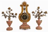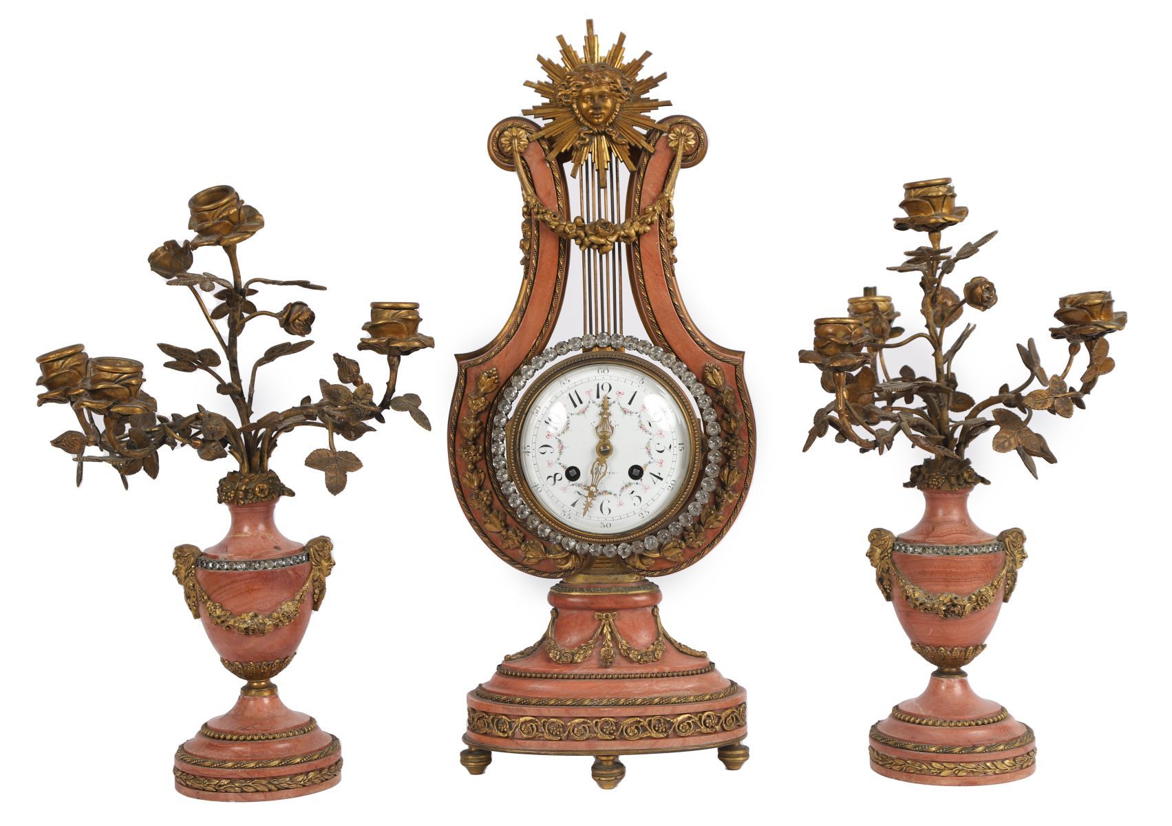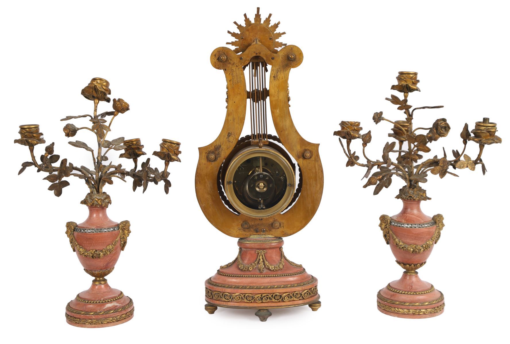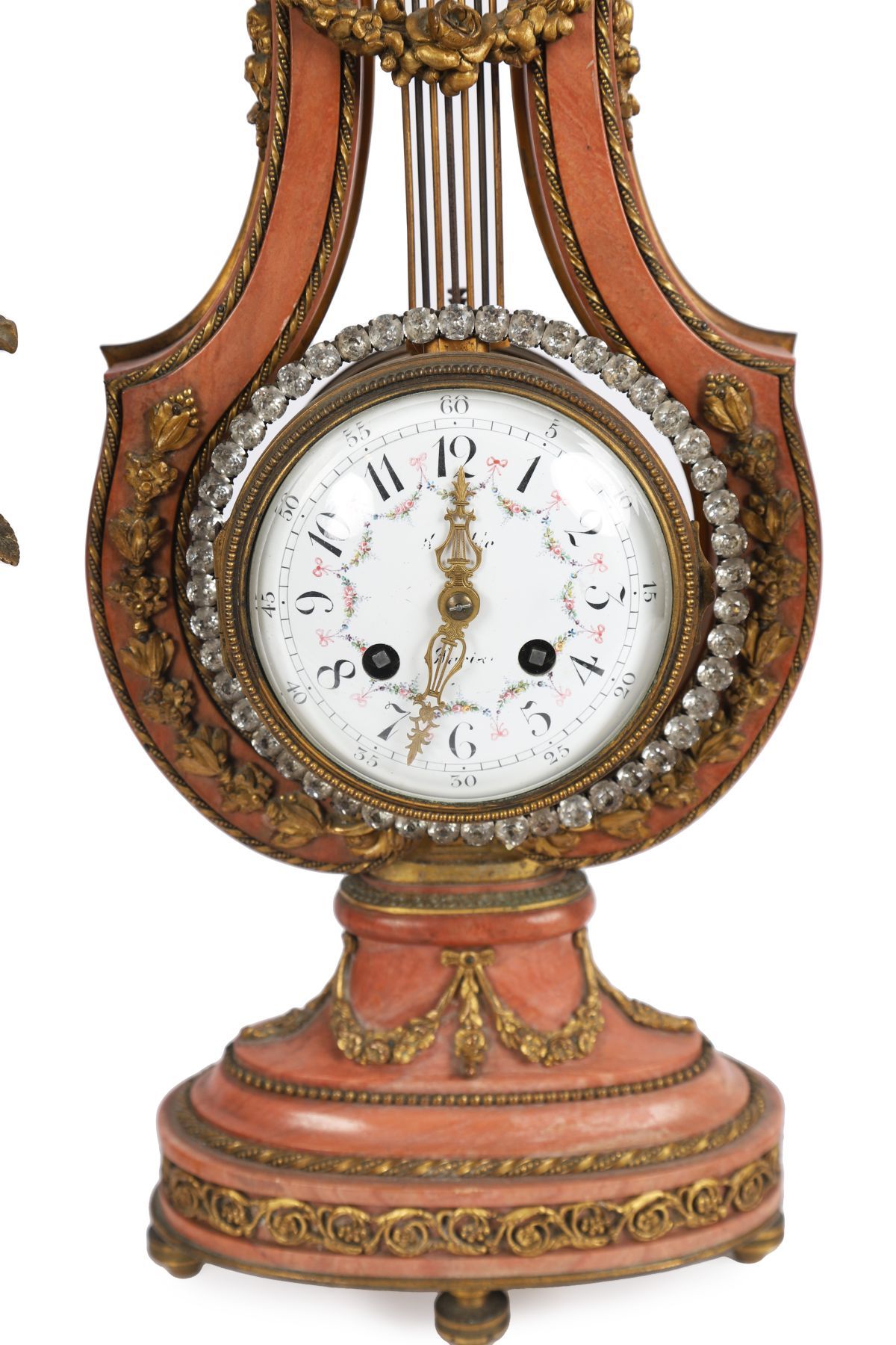 Lot 1221 19TH-CENTURY ORMOLU MOUNTED FRENCH LYRE SHAPED CLOCK SET