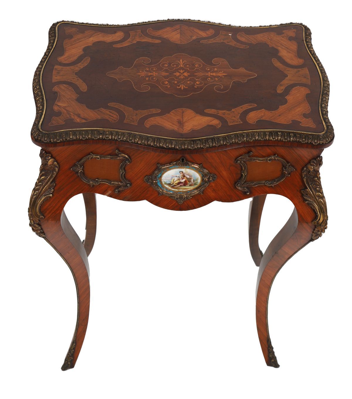 Lot 869 19TH-CENTURY ORMOLU MOUNTED KINGWOOD AND SÈVRES PANELLED WORKTABLE