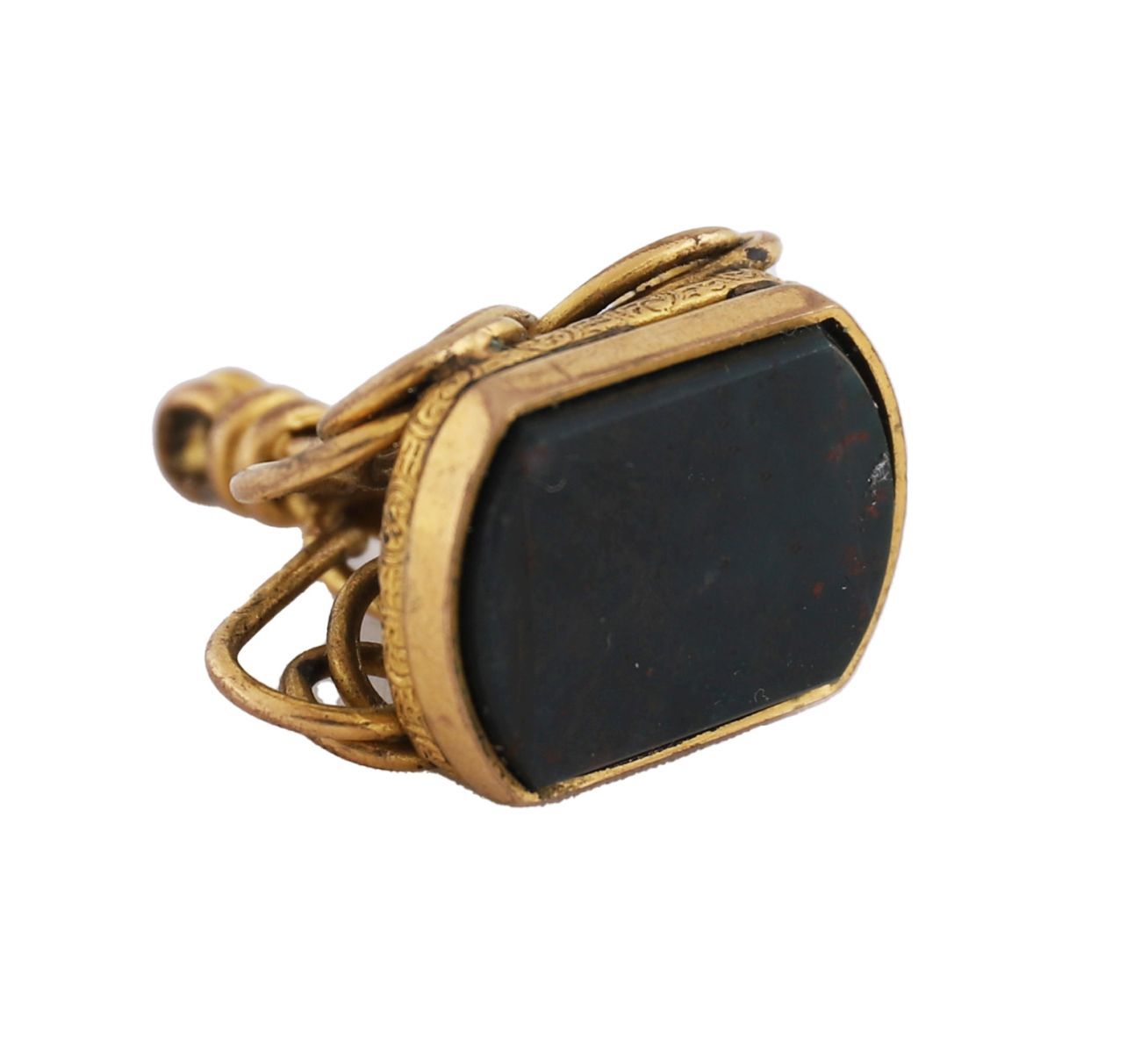 A 19th-century gilt metal (pinchbeck) seal set with rectangular bloodstone matrix.