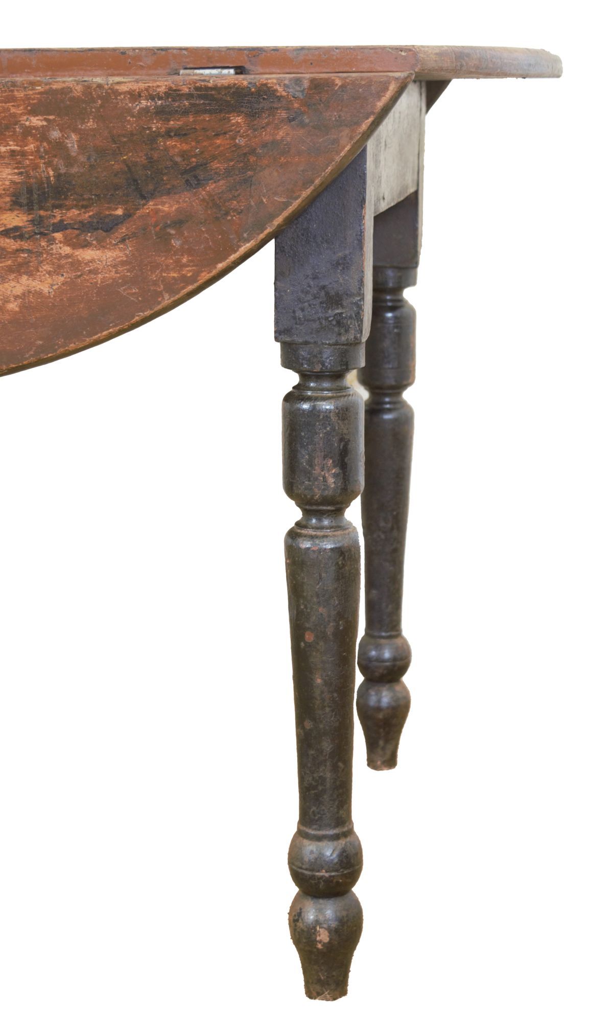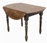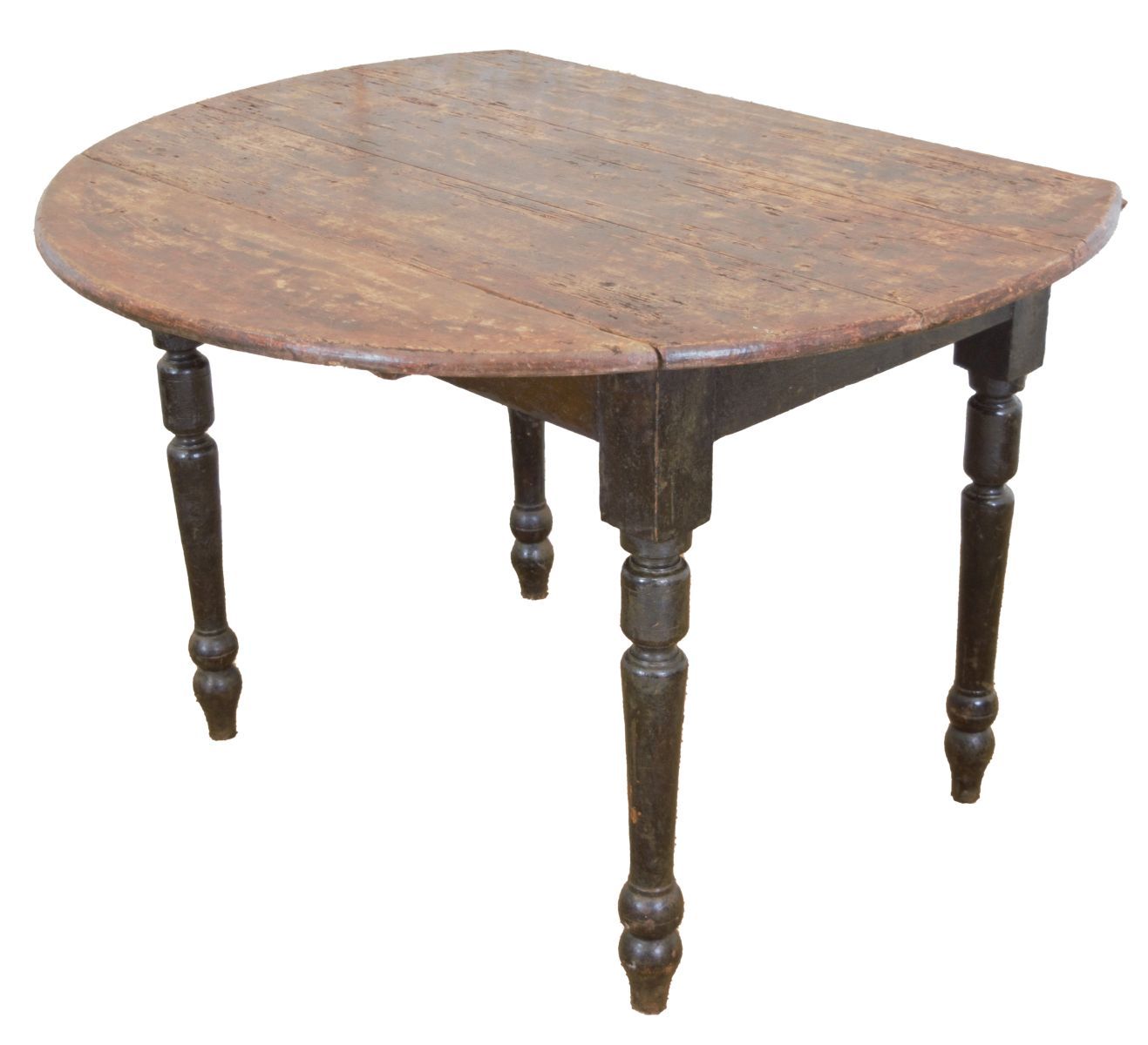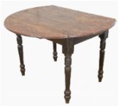 the rectangular top with hinged drop leaves at either side, raised on turned legs; a compact and practical design.