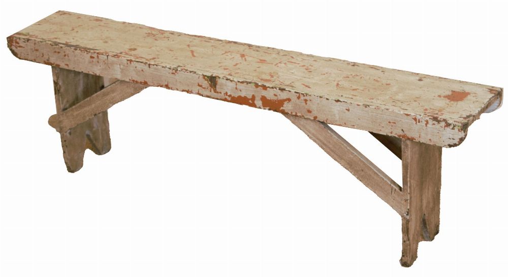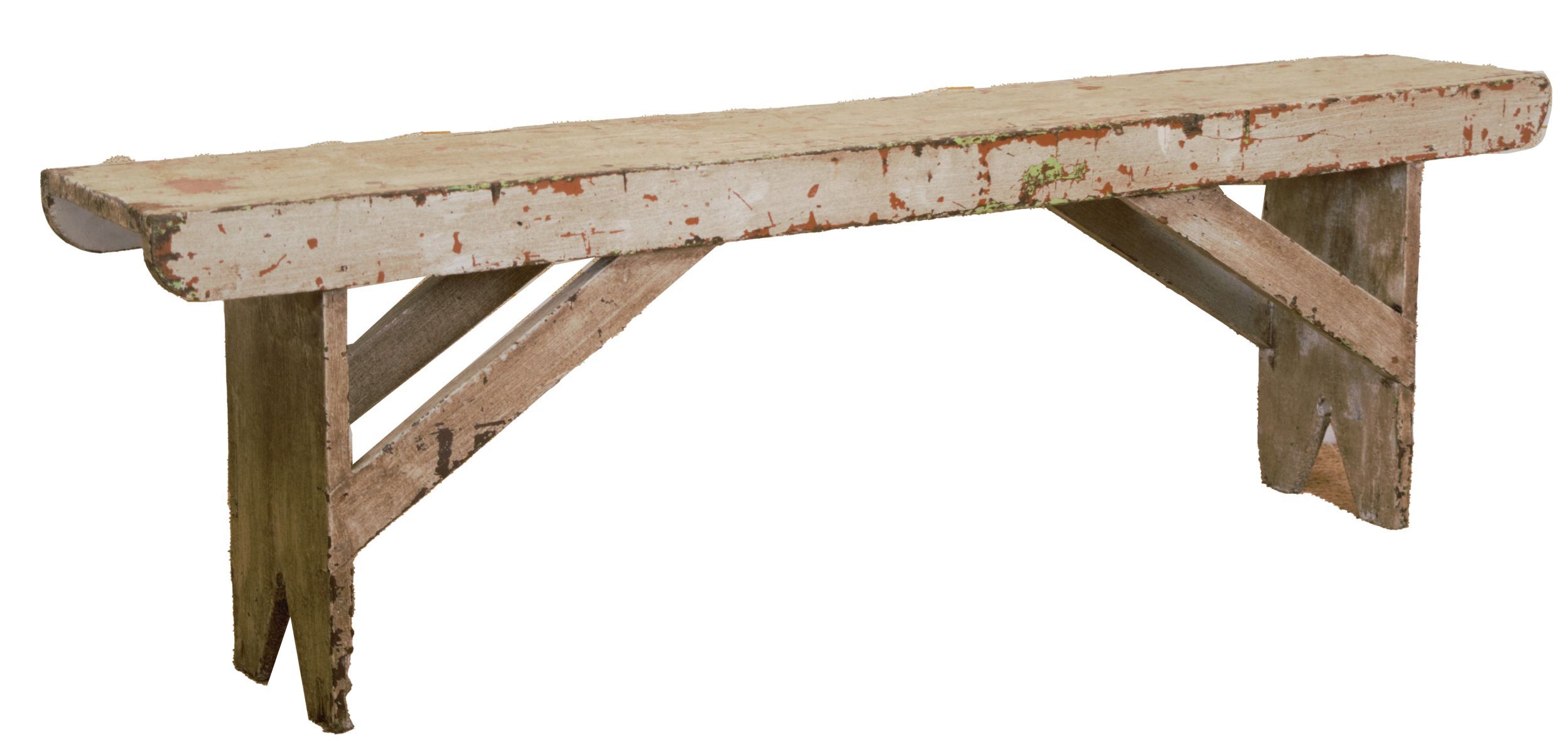 in original white-painted finish, the long rectangular seat supported by sturdy block legs; utilitarian and designed for daily use in the kitchen or scullery.