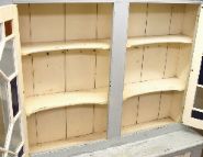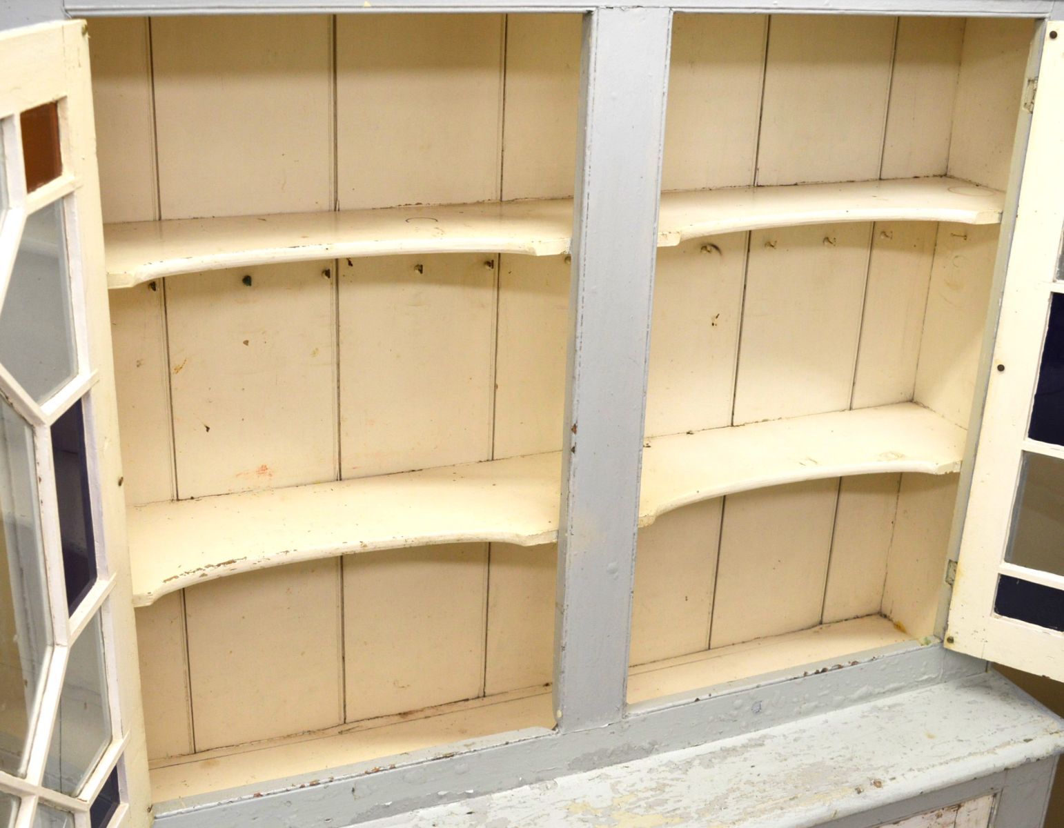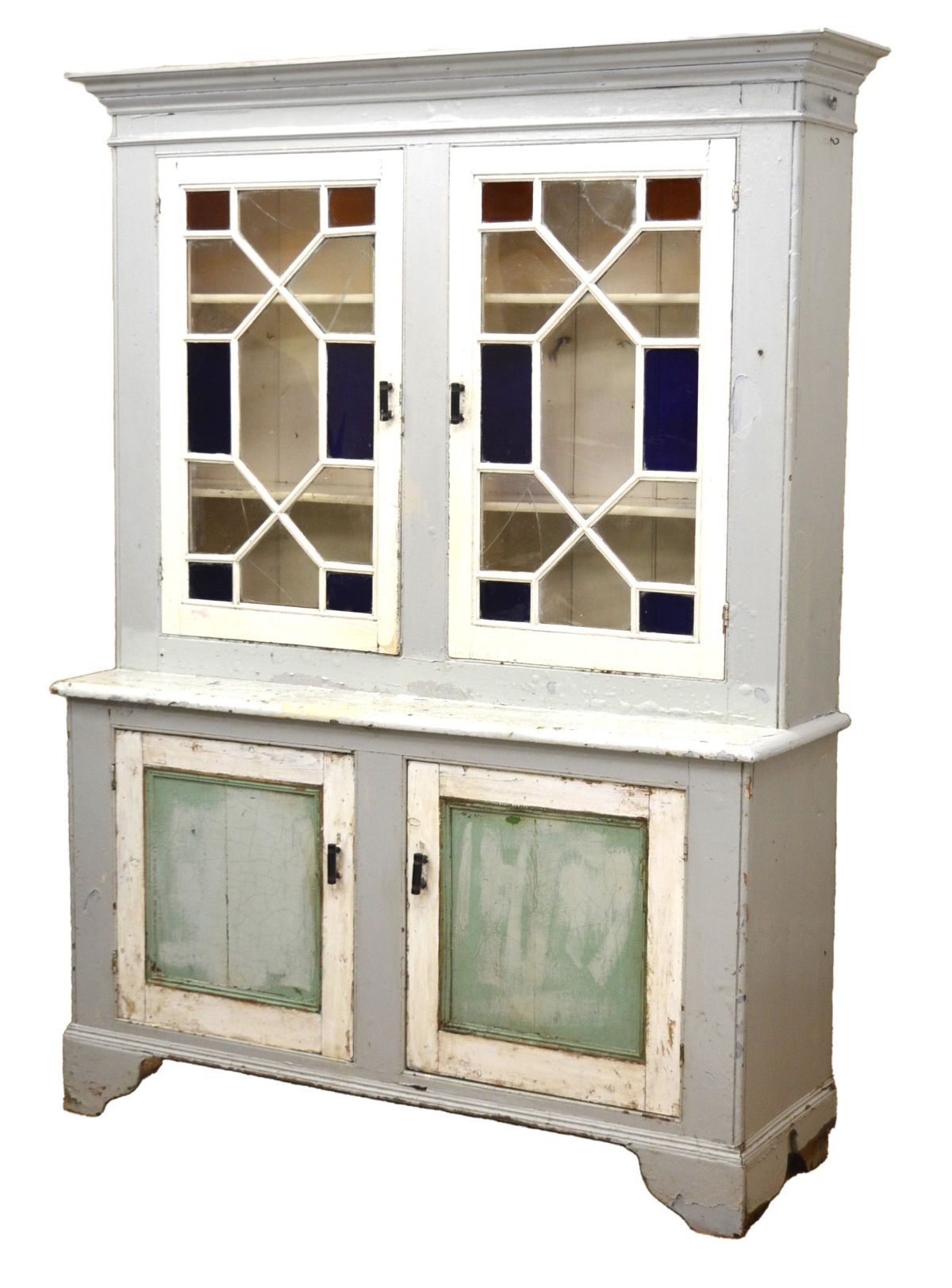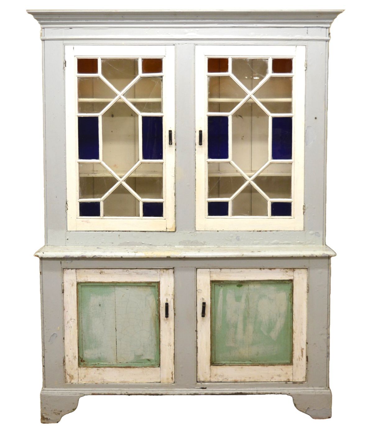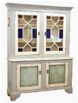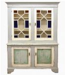 featuring two geometrically glazed upper doors over a pair of panelled lower doors; a practical and decorative storage unit in solid pine.