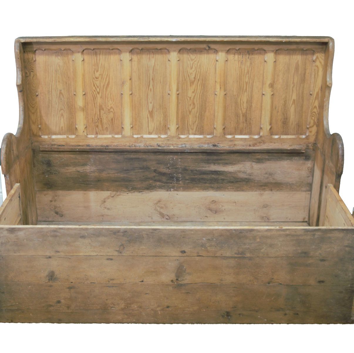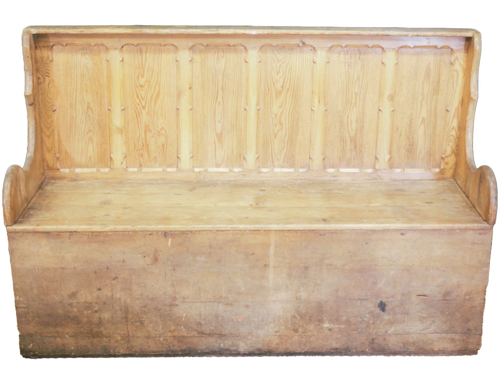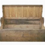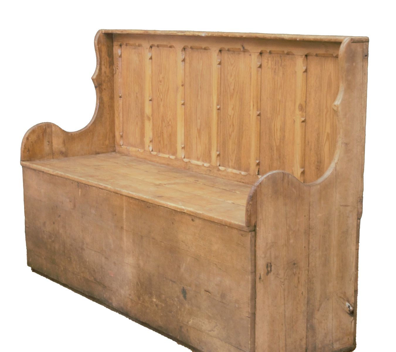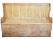 with a six-panel back above a hinged rectangular seat, formerly used as both seating and bedding in rural cottages.