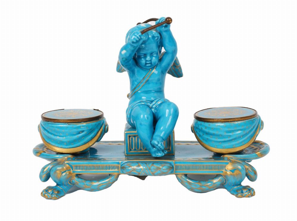 Lot 98 19TH CENTURY PORCELAIN AND PARCEL-GILT PEN AND INK STAND, ATTRIBUTED TO JOSEPH PETIT