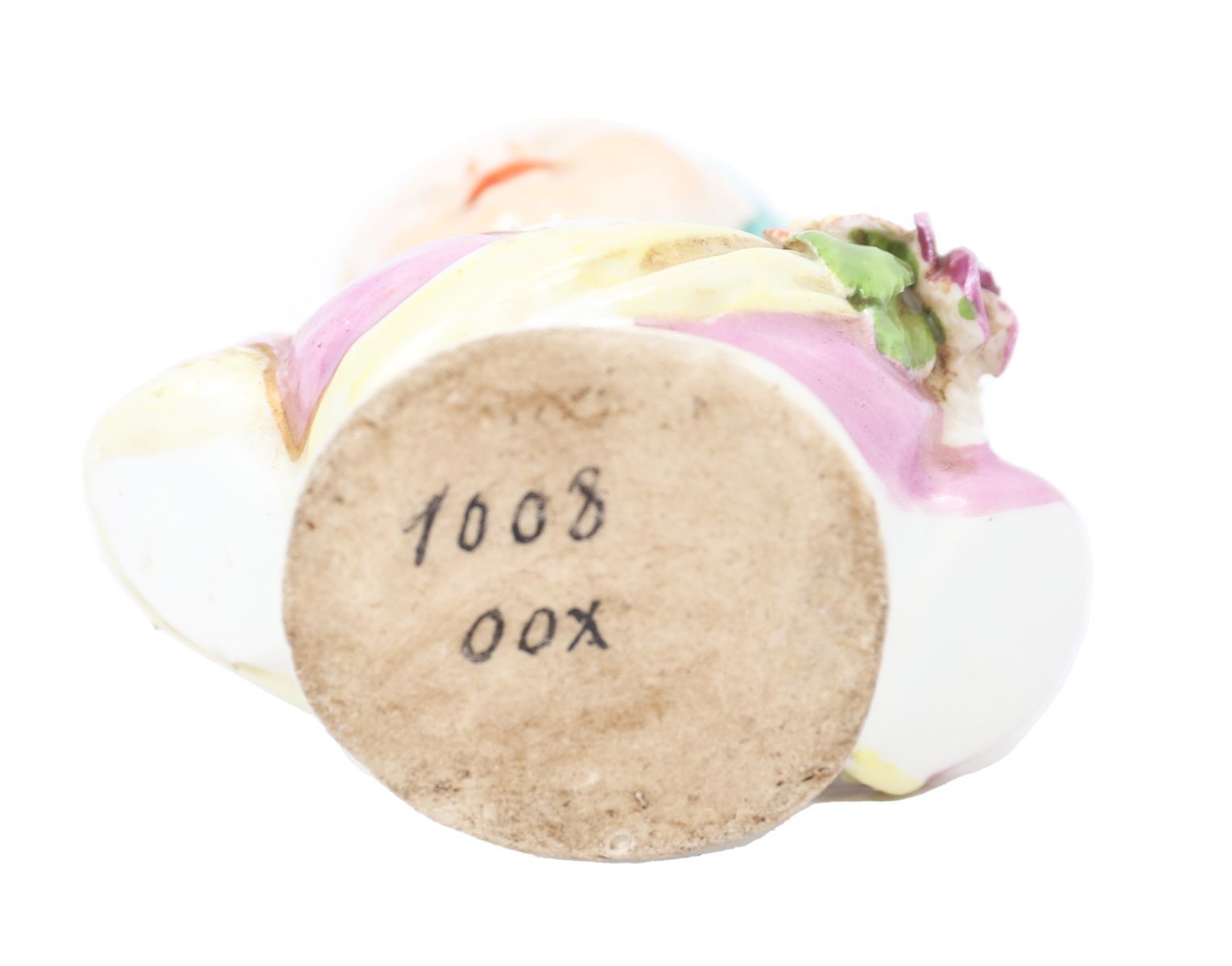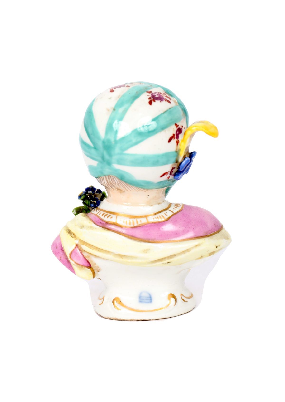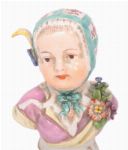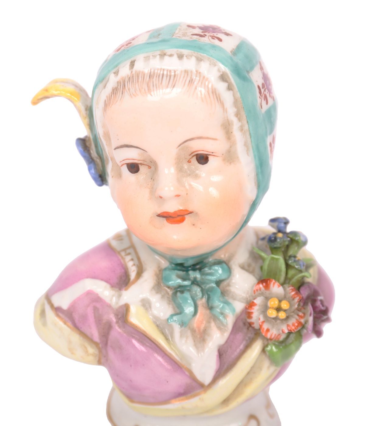 Porcelain bust of a young figure with softly modelled features and applied floral decoration, painted in naturalistic colours.