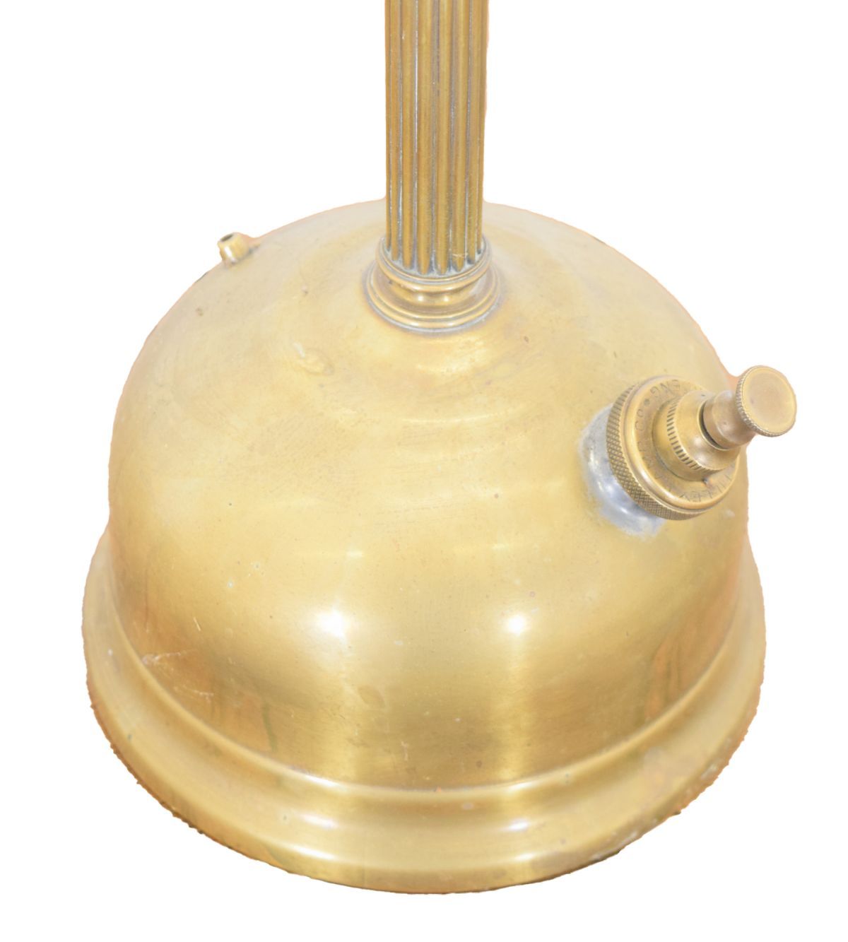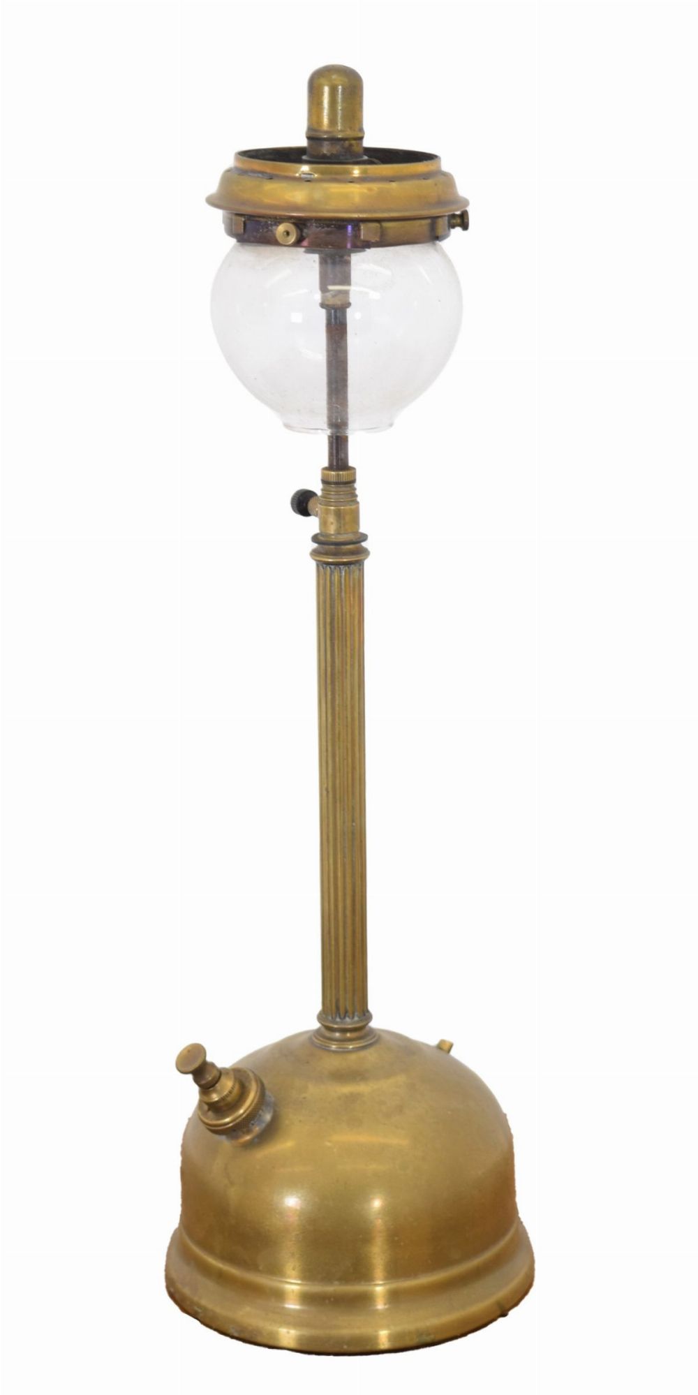 with glass shade and oil reservoir; typical of domestic Irish lighting before electrification.