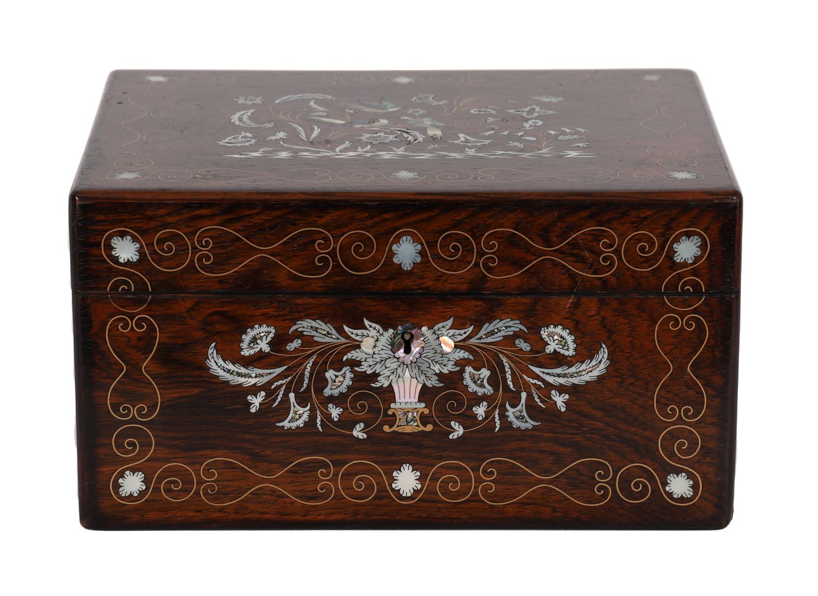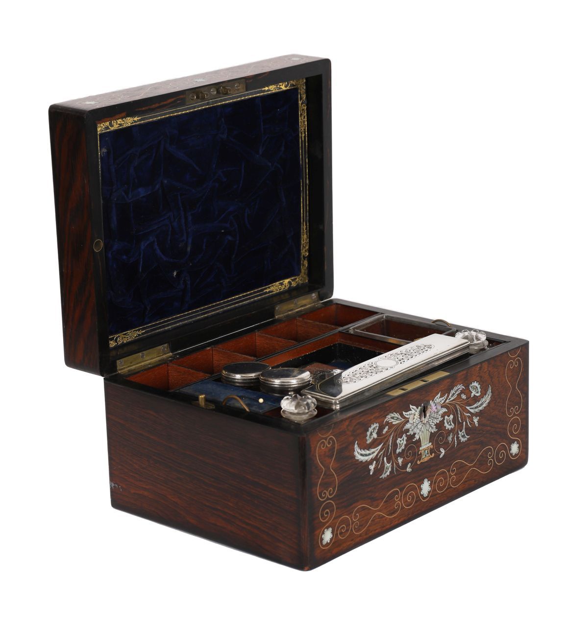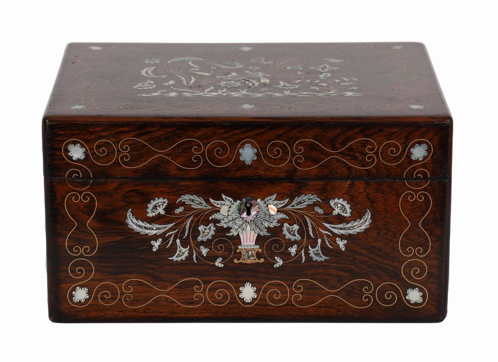 Lot 988 19TH-CENTURY ROSEWOOD AND MOTHER-OF-PEARL INLAID VANITY BOX