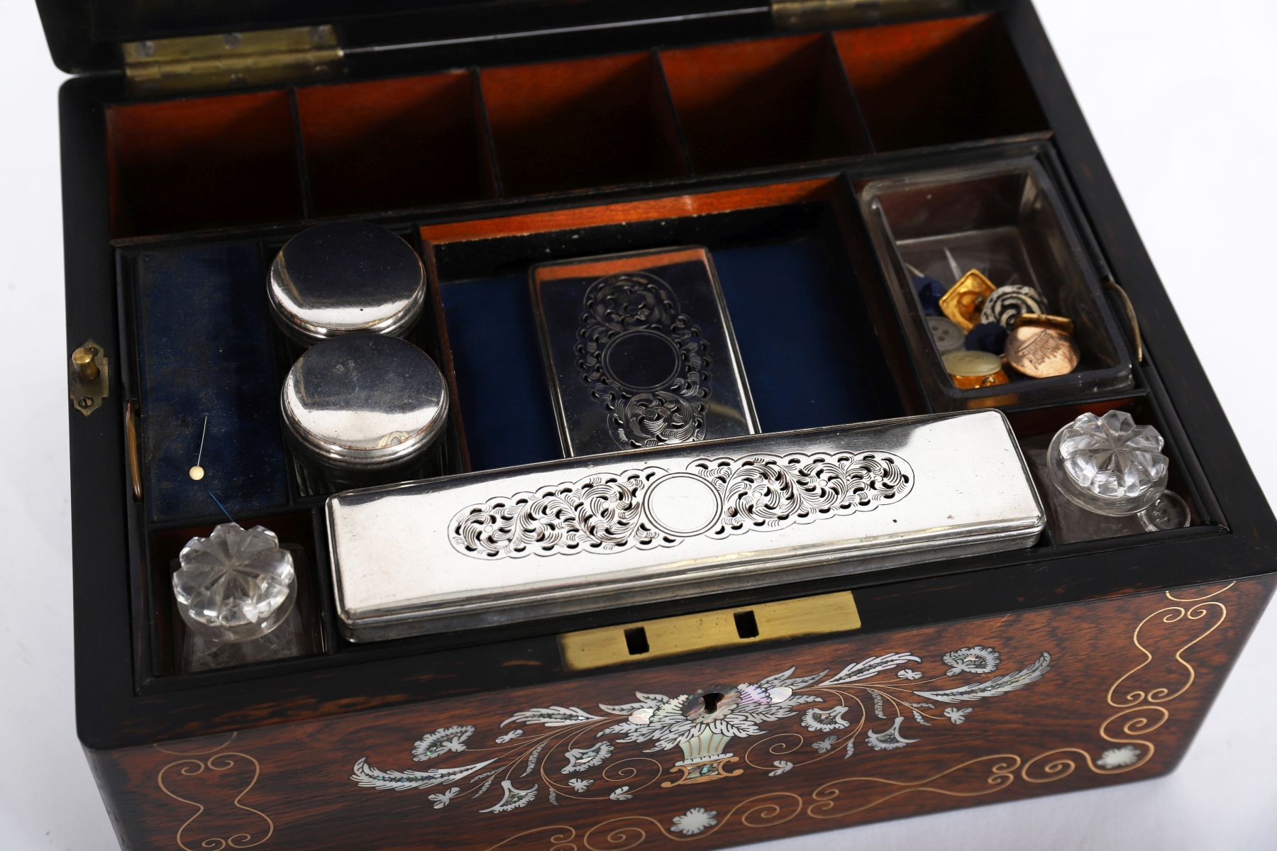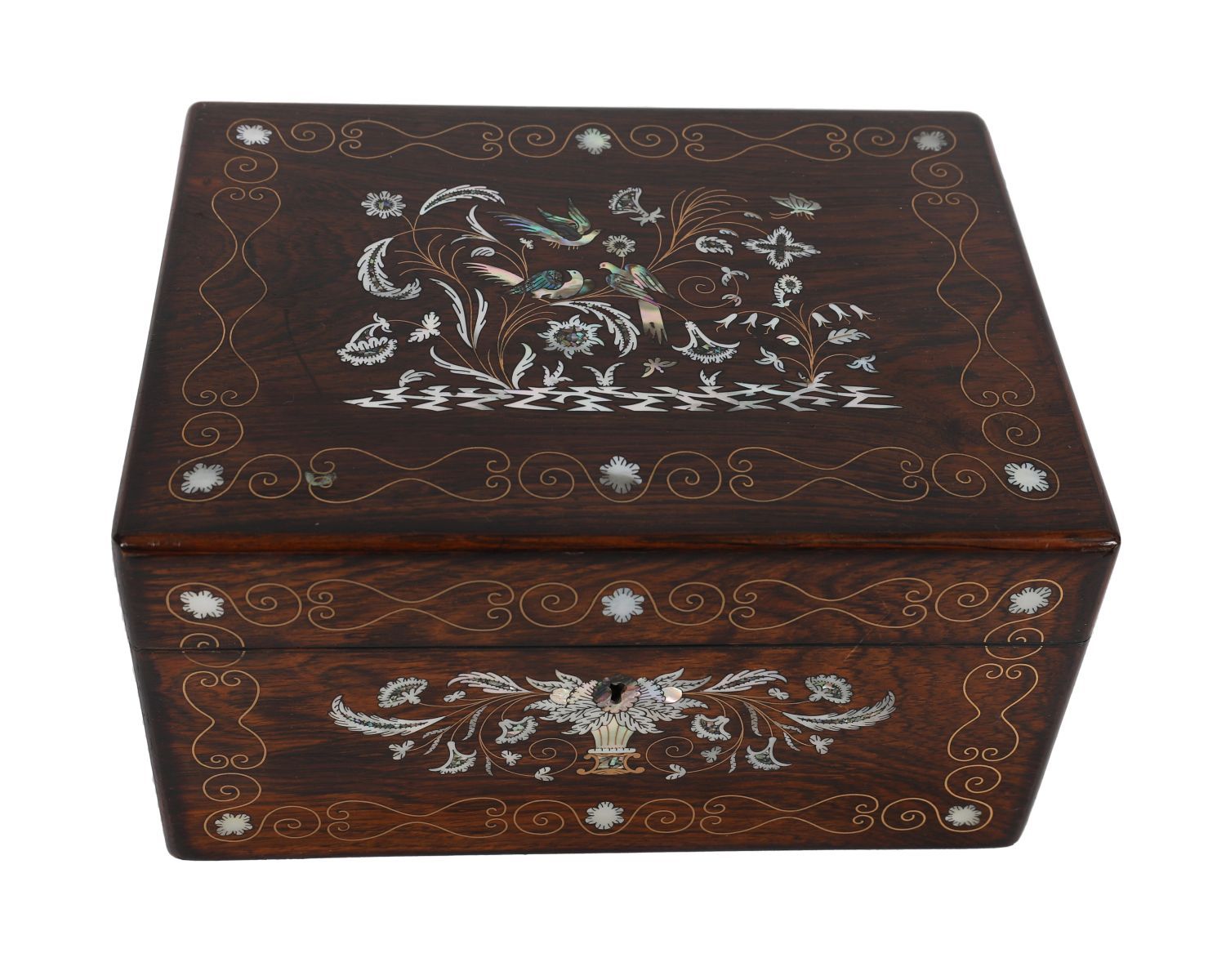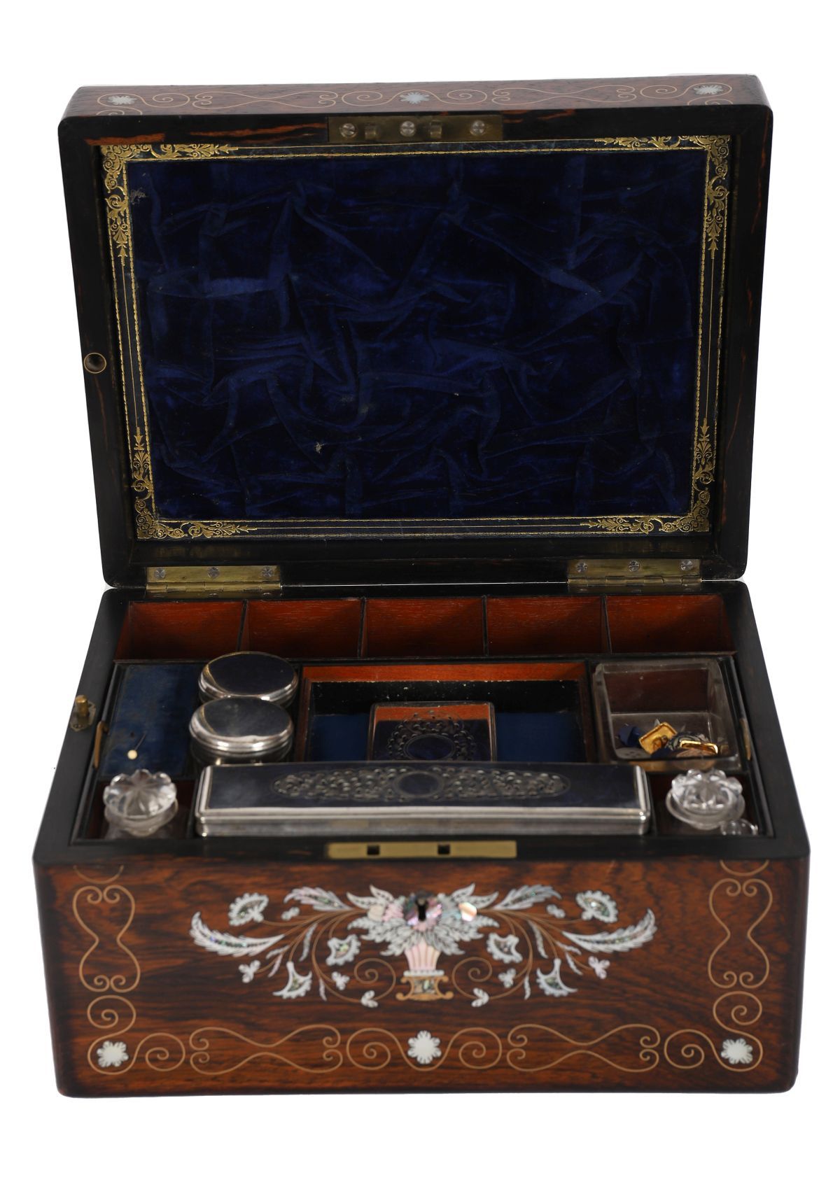 Lot 988 19TH-CENTURY ROSEWOOD AND MOTHER-OF-PEARL INLAID VANITY BOX