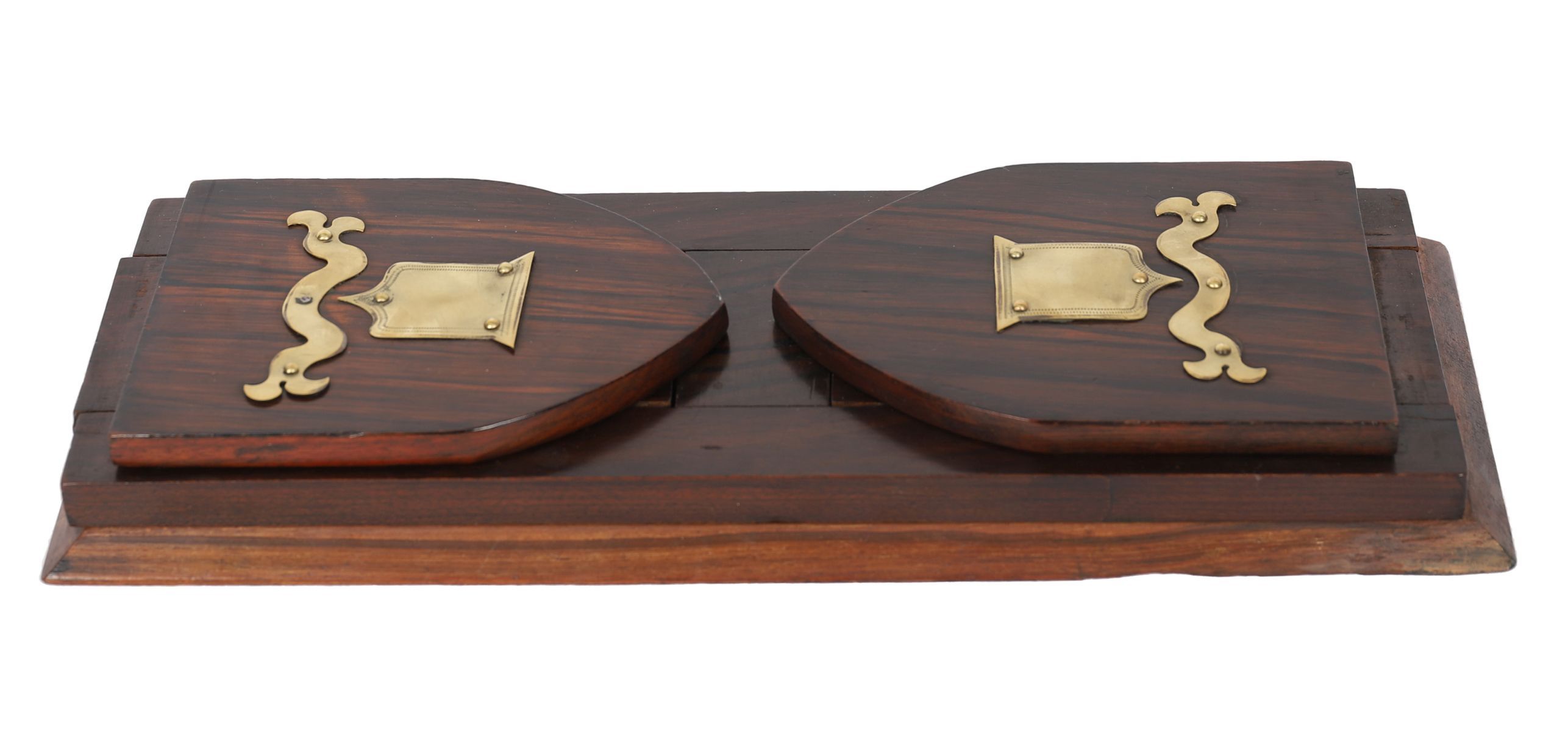 A Victorian rosewood expanding book slide, with hinged and sliding base and shaped end supports.