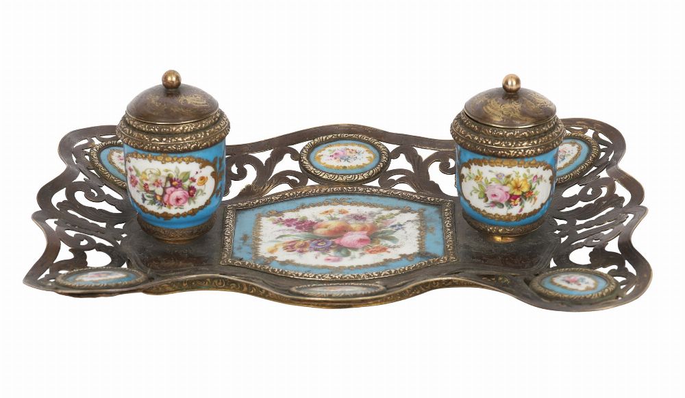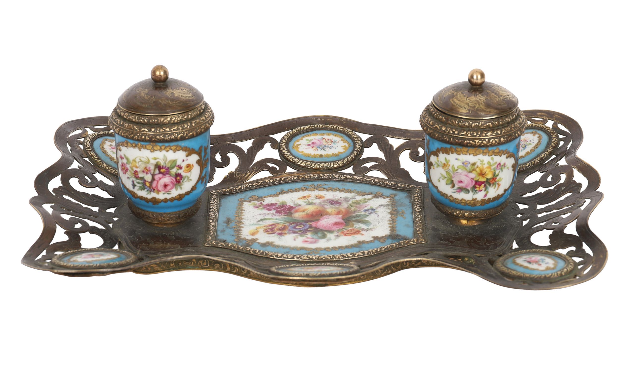 Lot 262 19TH-CENTURY SEVRES STYLE PORCELAIN AND ORMOLU PEN AND INK STAND