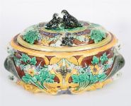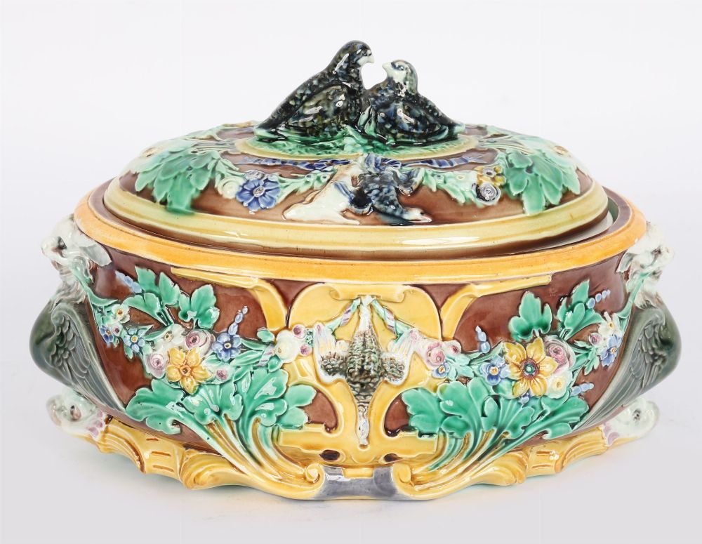 Lot 580 19TH-CENTURY WEDGWOOD MAJOLICA GAME PIE DISH WITH ORIGINAL LINER