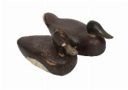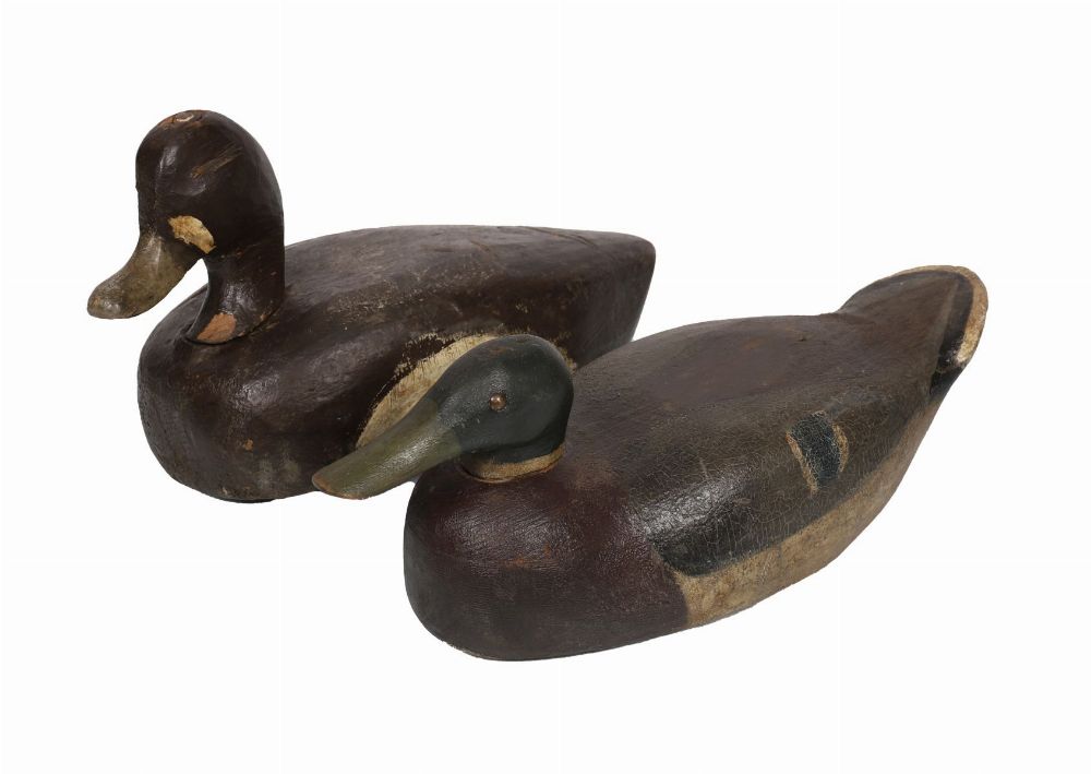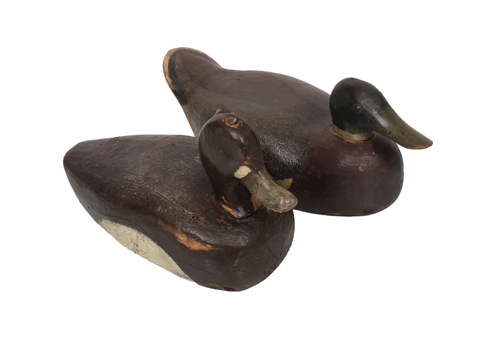Each a traditional carved and painted wooden duck decoy, with weathered patina and good surface texture.