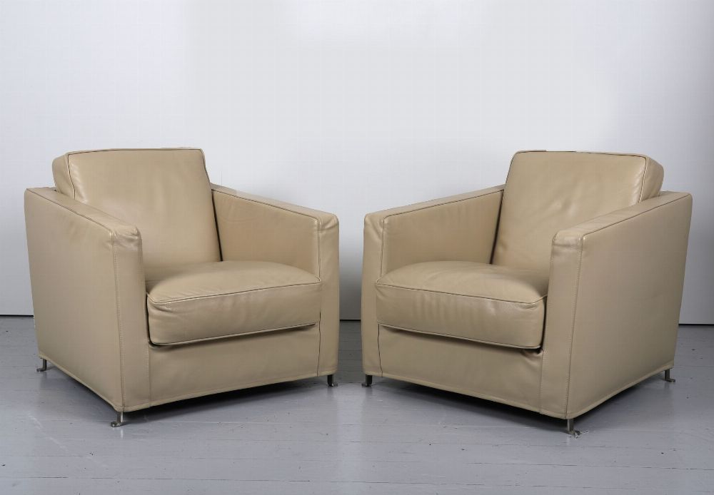 Lot 299 20TH-CENTURY PAIR OF DESIGNER LEATHER ARMCHAIRS