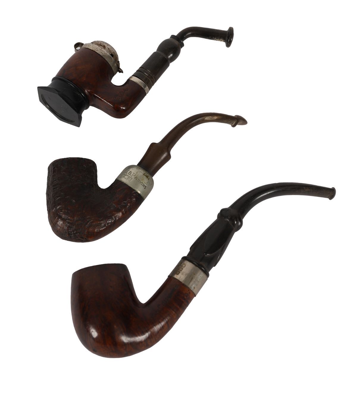 3 early 20th-century briar pipes, each display attractive grain and patina typical of well-made pipes of the period.