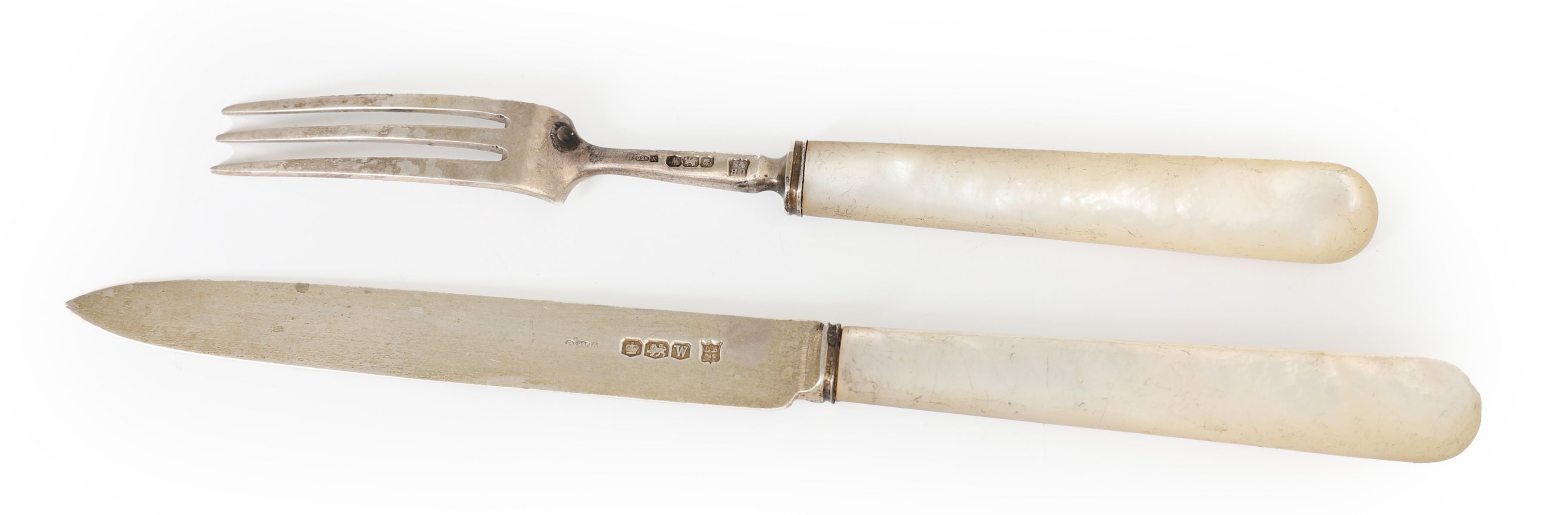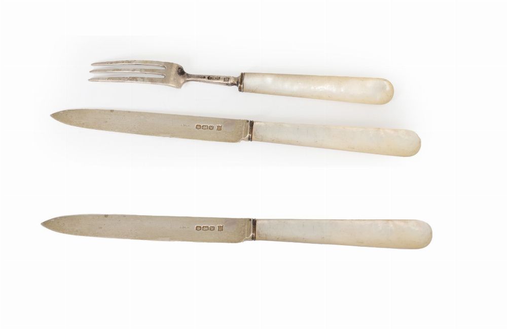 Lot 553 3 MOTHER O'PEARL HANDLED SILVER FRUIT KNIVES AND 3 FORKS