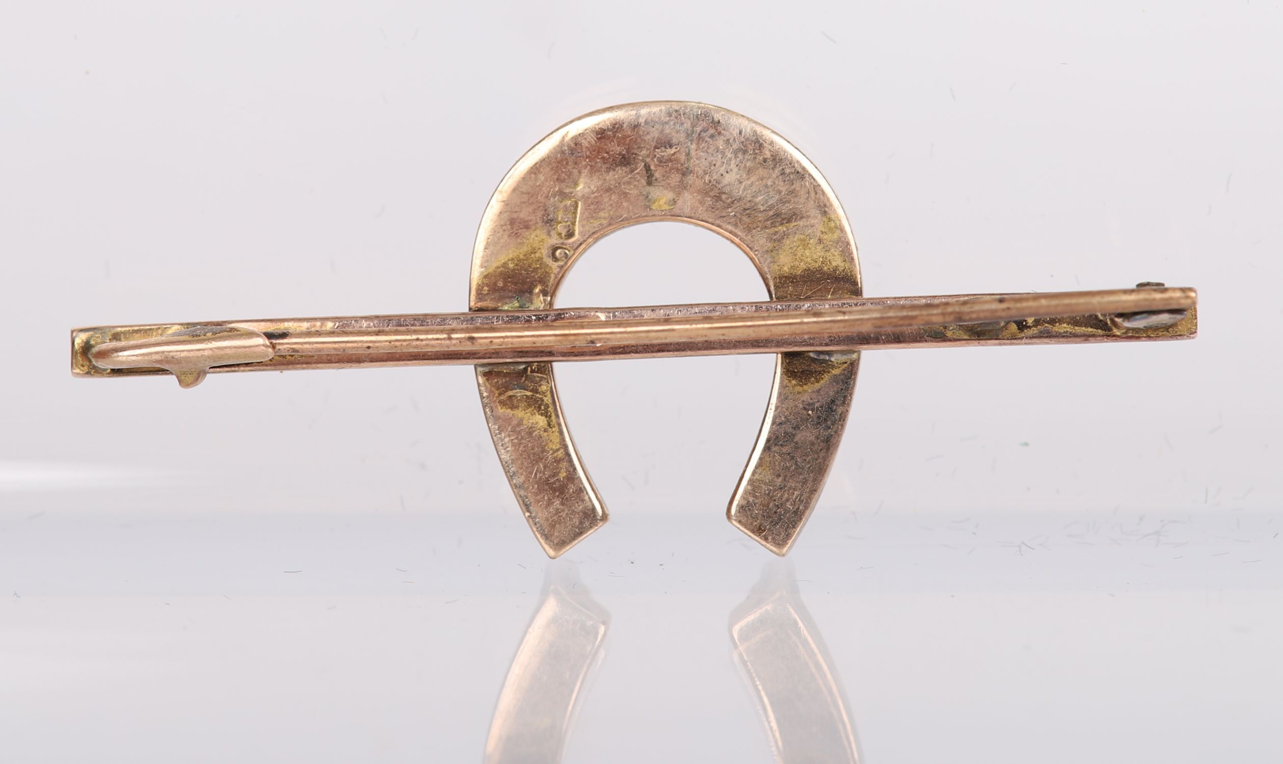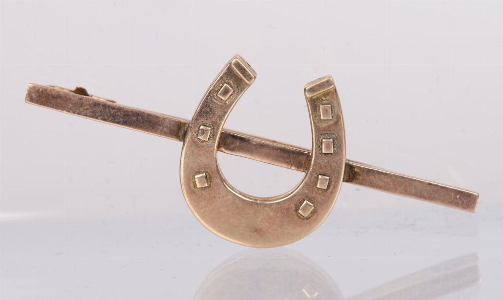 Lot 1405 9CT. GOLD HORSESHOE BROOCH
