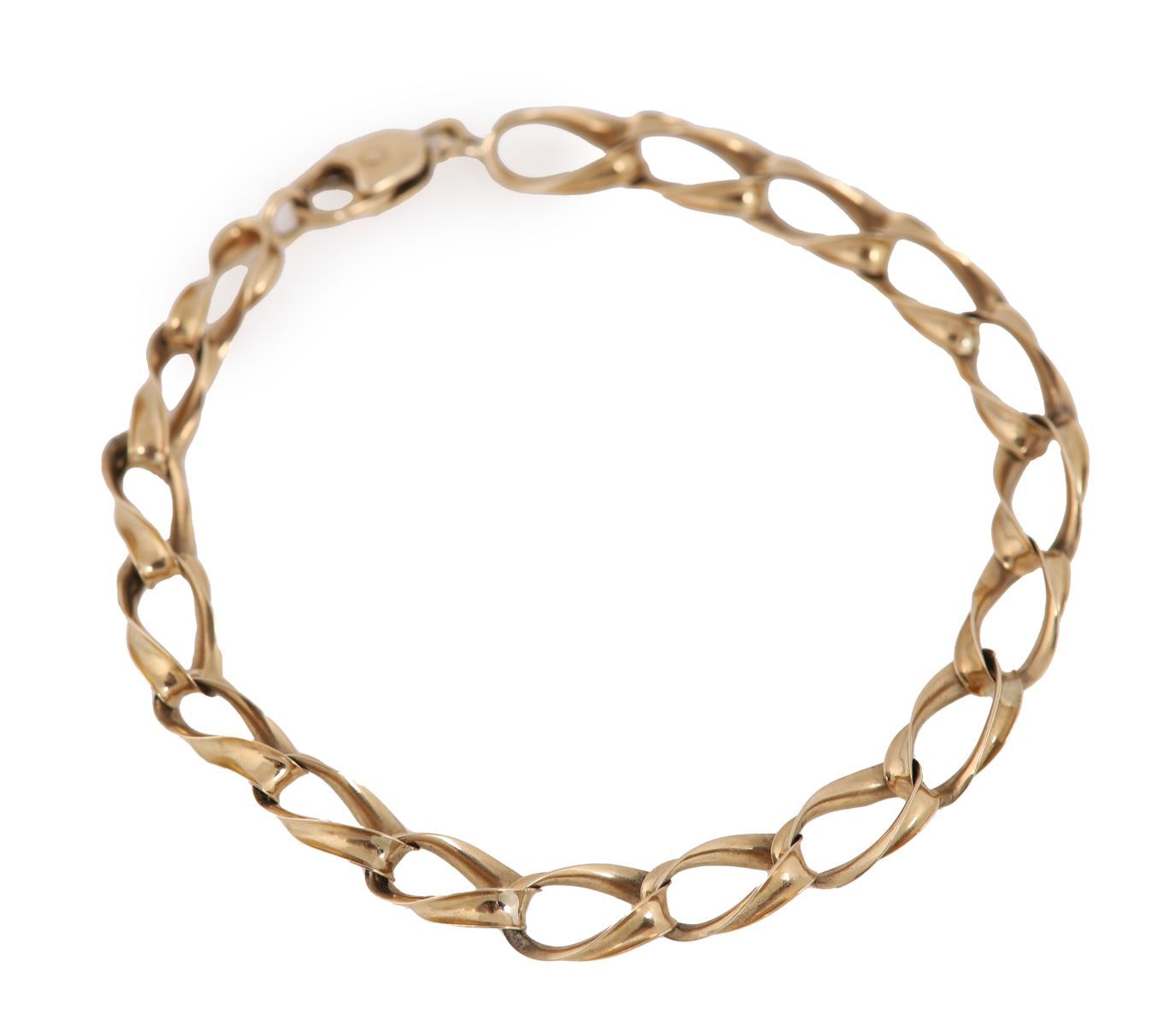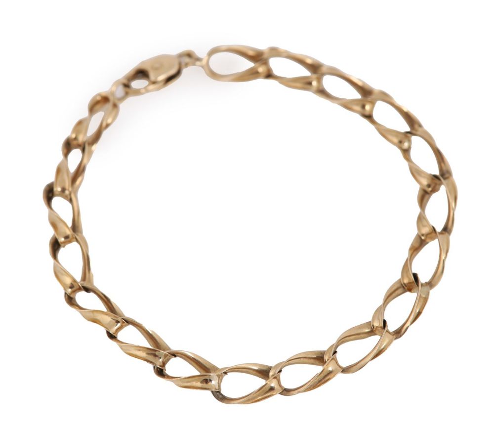 A 9ct gold bracelet formed of interlocking curb links, with clasp fastening. 4 grams.