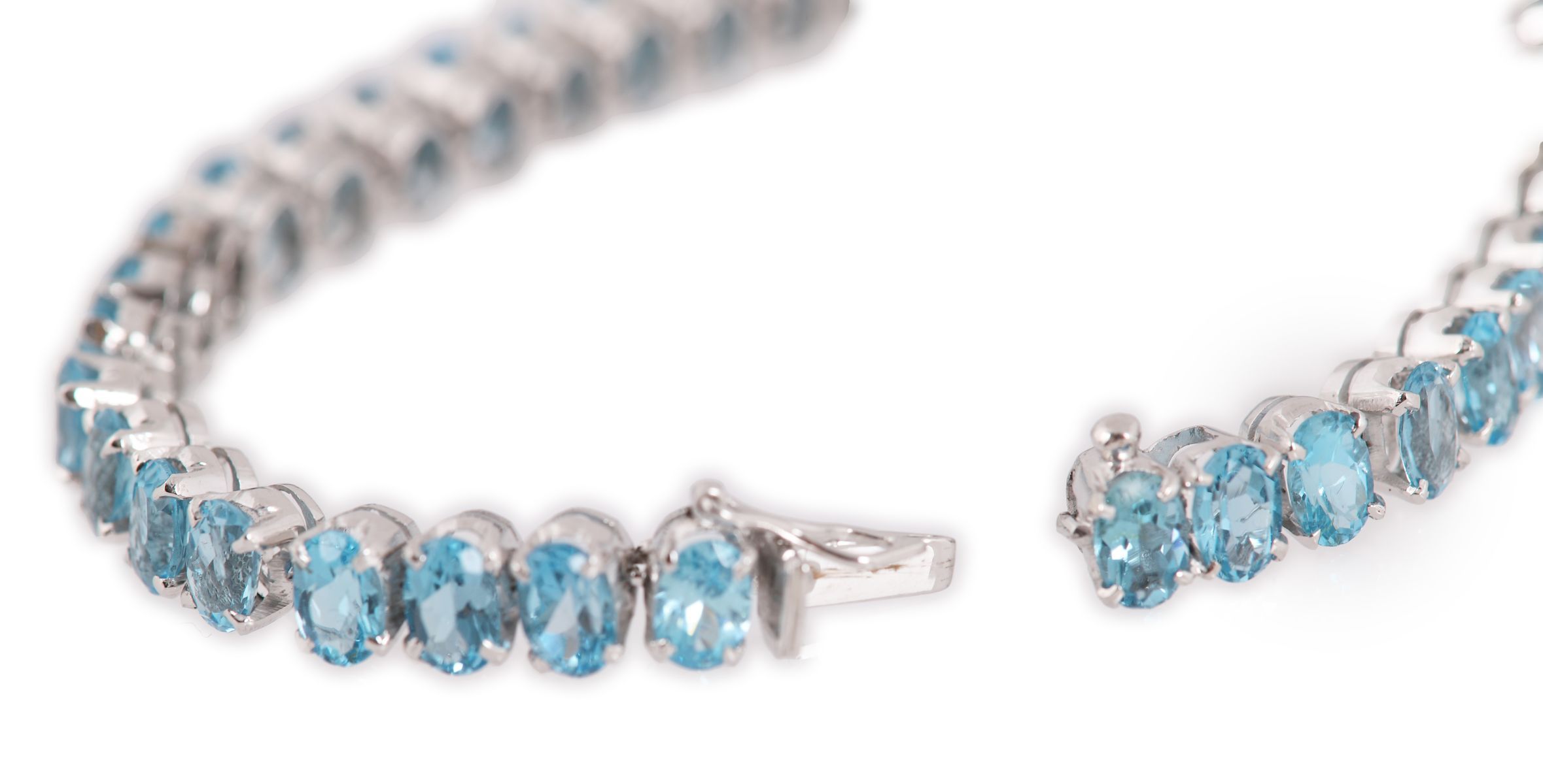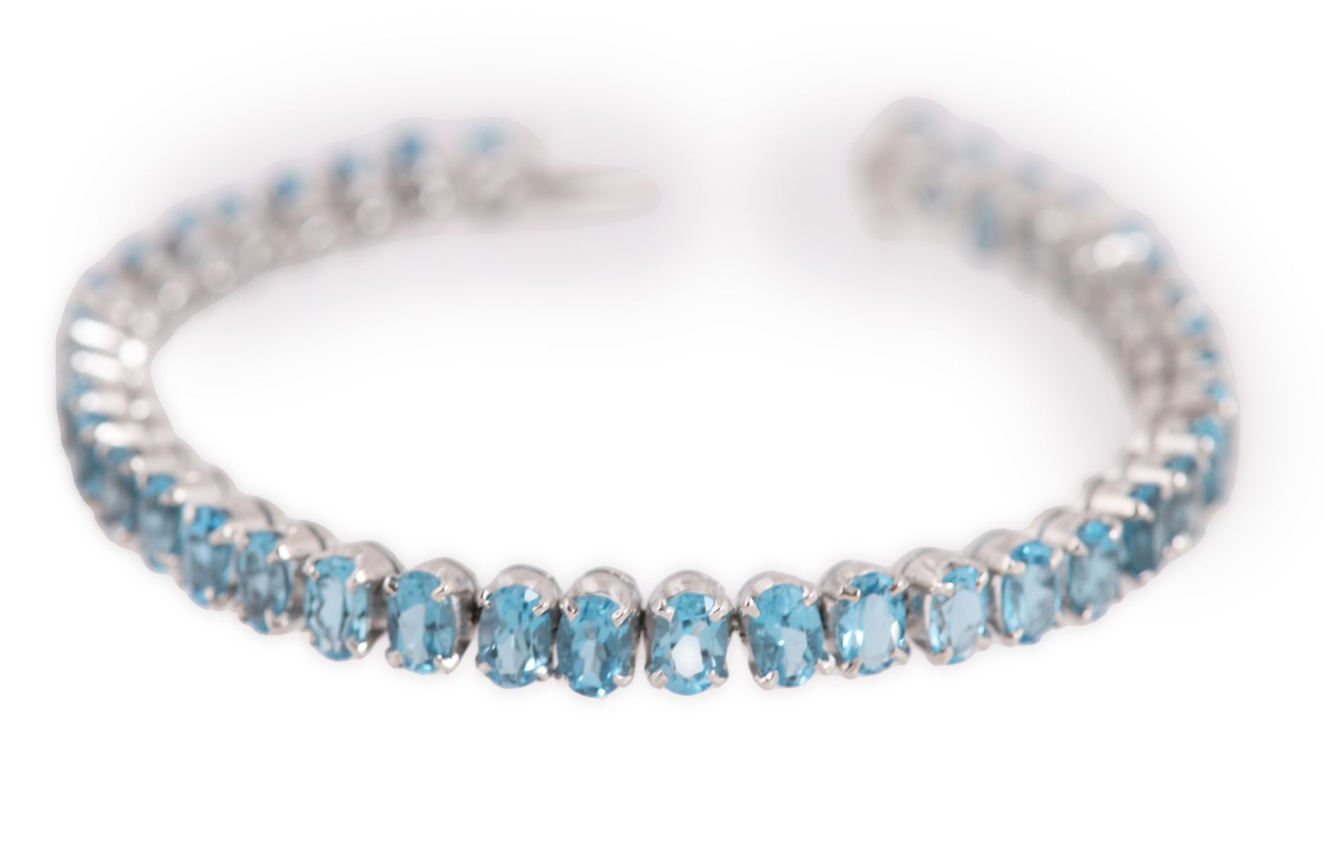 9 ct. white gold and aquamarine tennis bracelet.
