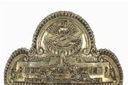 Of architectural form, cast and chased with floral and foliate ornament, the upper crest enriched with beaded and linear detailing, above a row of robust teeth.