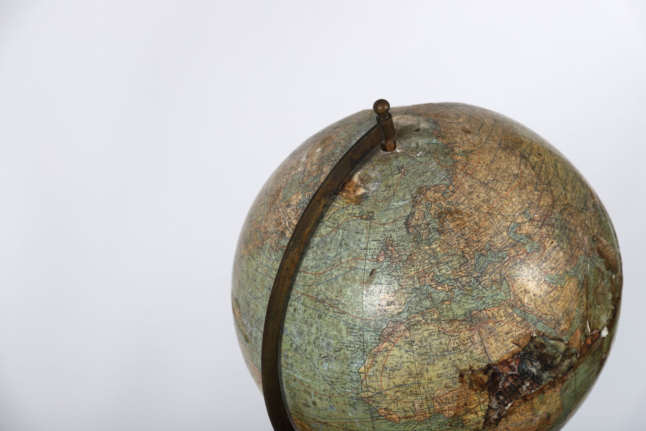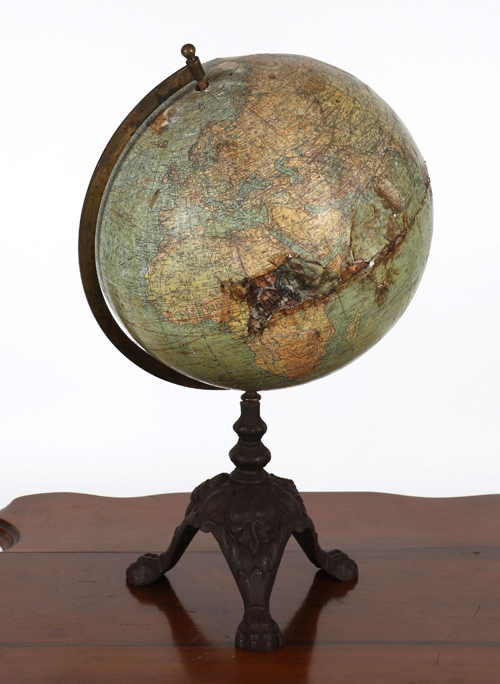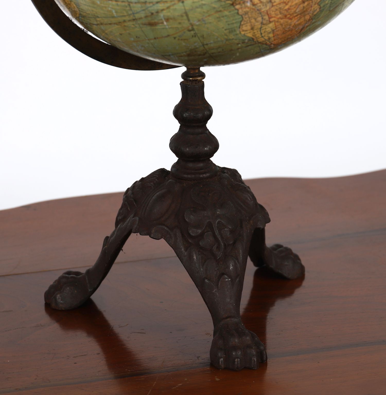 mounted on a turned wooden stand. The sphere with printed paper gores depicting global cartography of the period, including the United States with contemporary state boundaries and colonial possessions worldwide. Maker’s cartouche reading “Johnson’s Terrestrial Globe”.