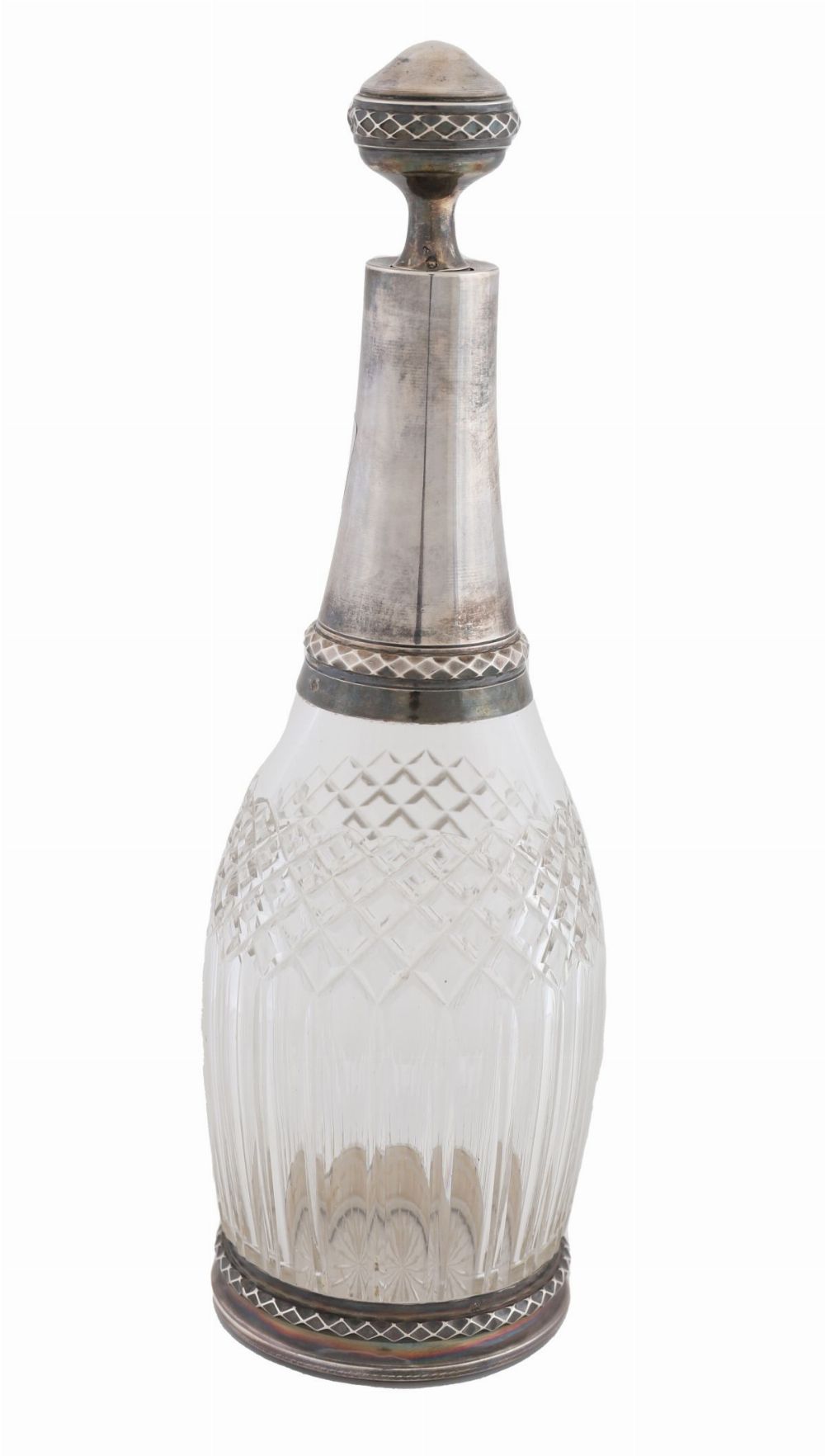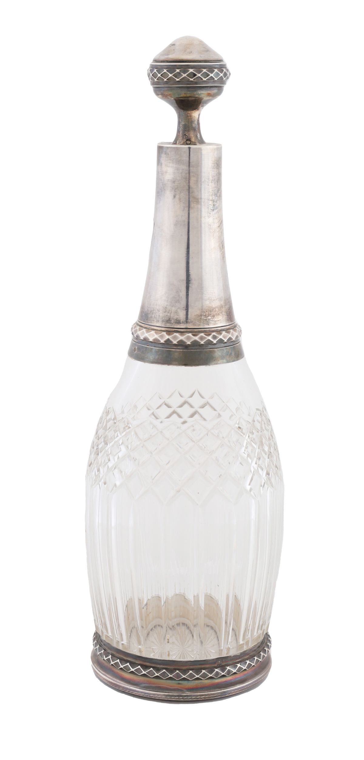 Lot 42 A LATE 19TH-CENTURY SILVER-MOUNTED CUT-CRYSTAL DECANTER AND STOPPER