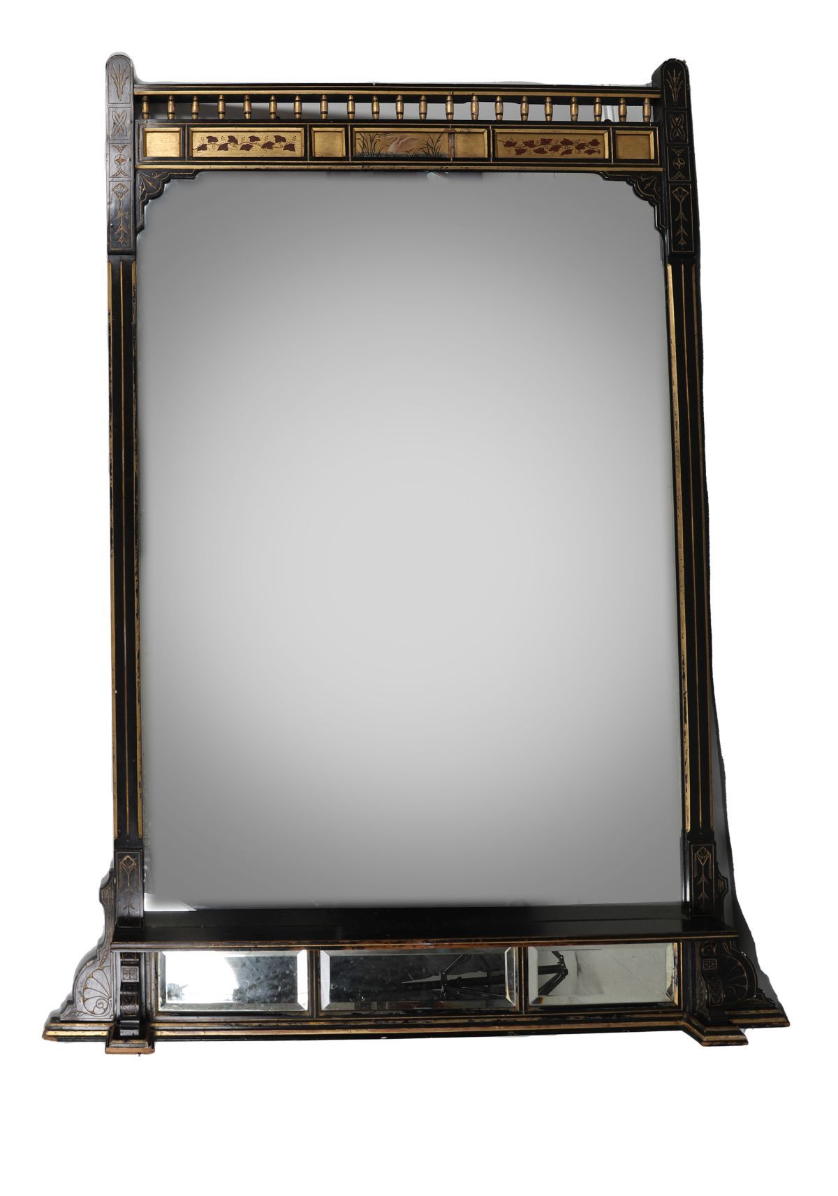 Lot 956 AESTHETIC REVIVAL EBONY, PARCEL-GILT, AND PAINTED OVERMANTEL MIRROR