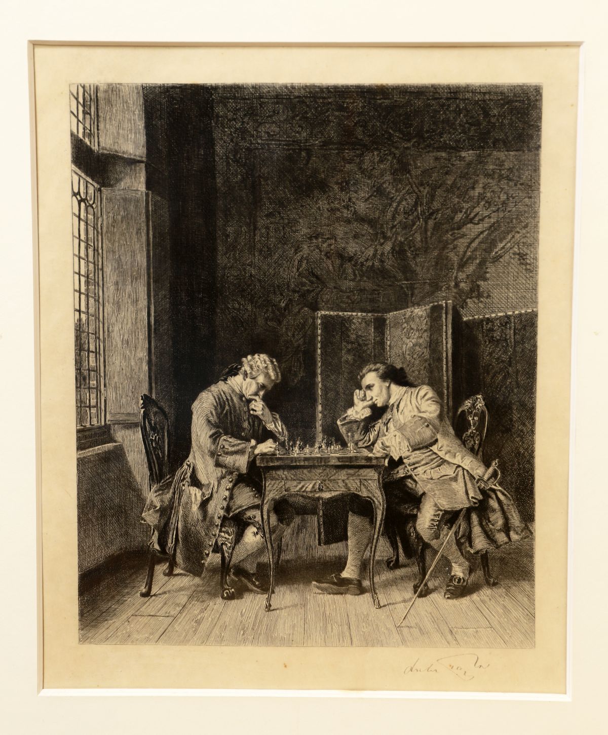 an etching adapted from a painting by Jean-Louis-Ernest Meissonier. Framed.