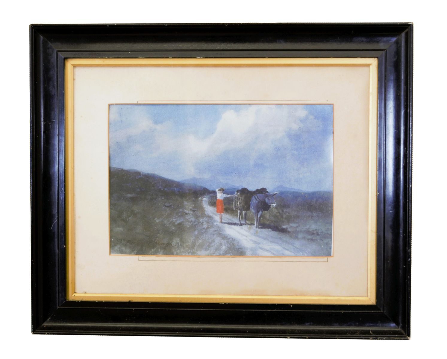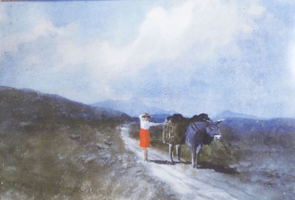 a reproduction print of the well-known Irish scene, depicting rural life and turf harvesting.
