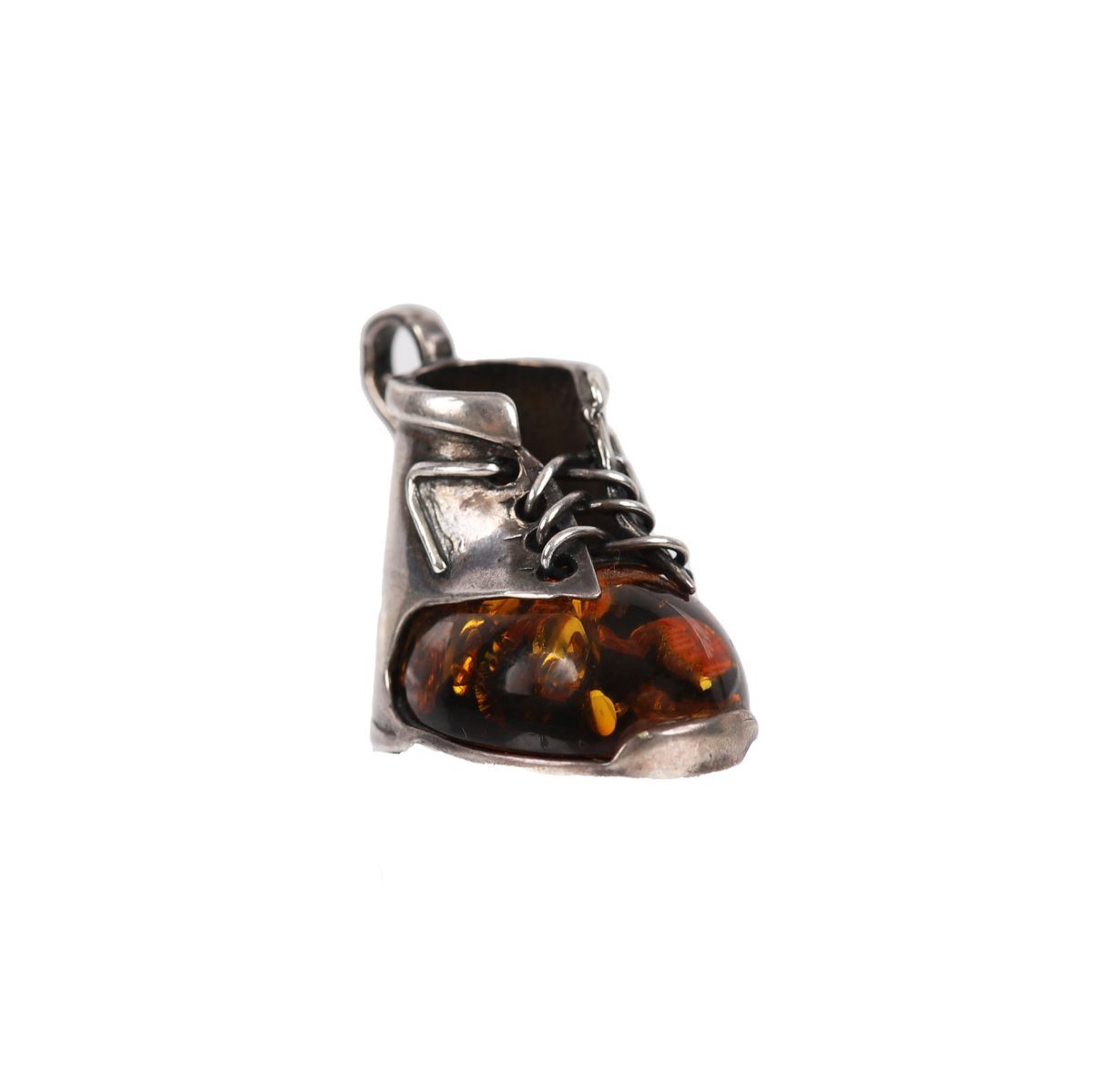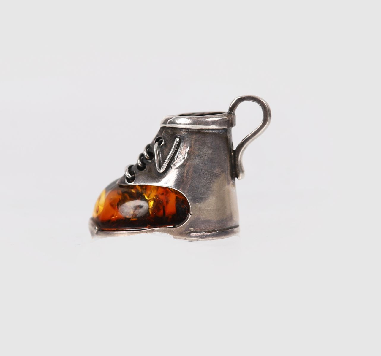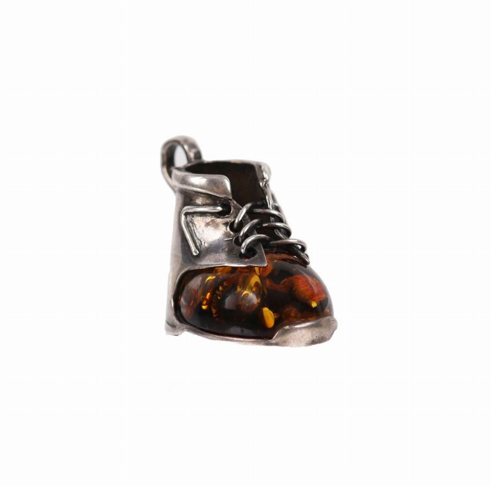 Lot 616 AMBER AND SILVER BOOT PENDANT, C. 1960S