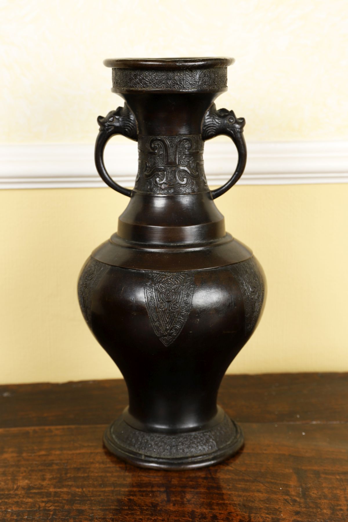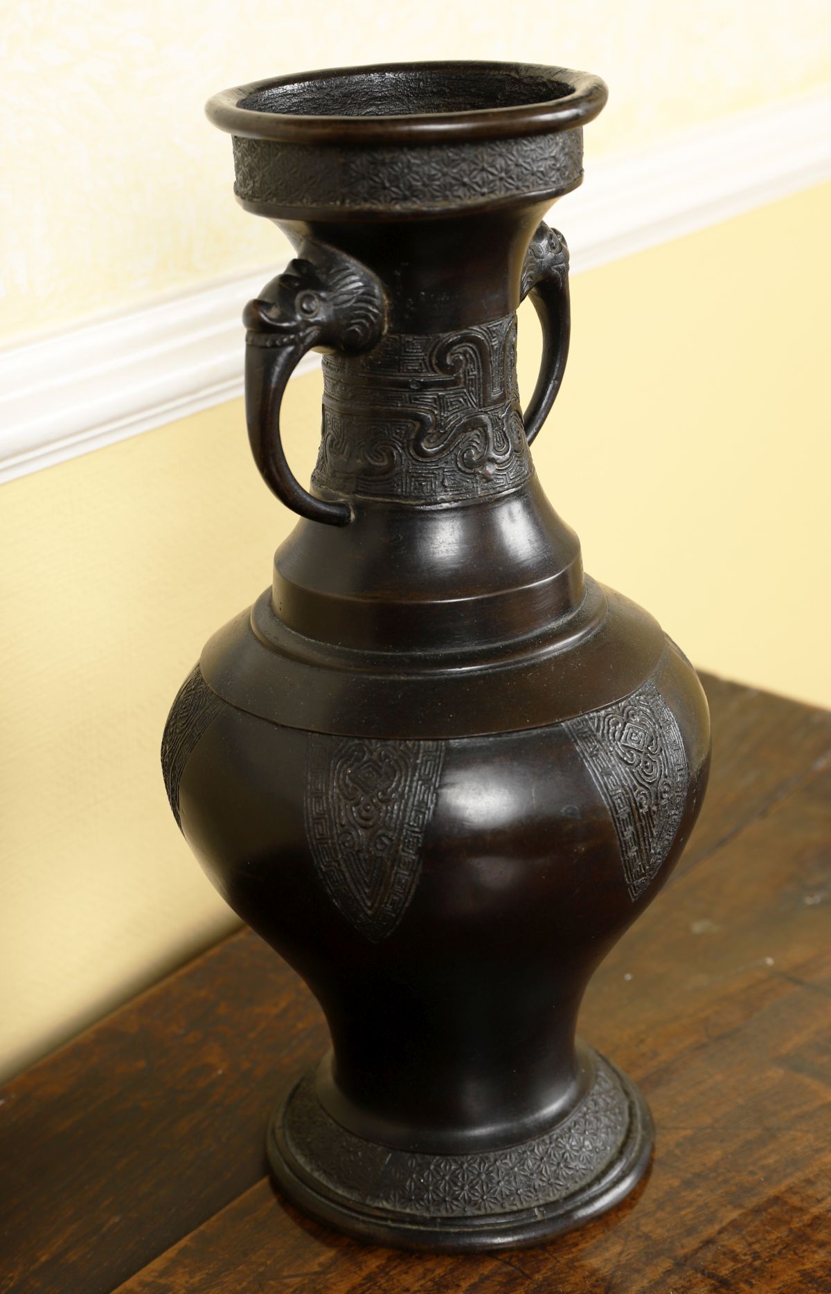 Lot 990 ANTIQUE CHINESE BRONZE BALUSTER-SHAPED VASE