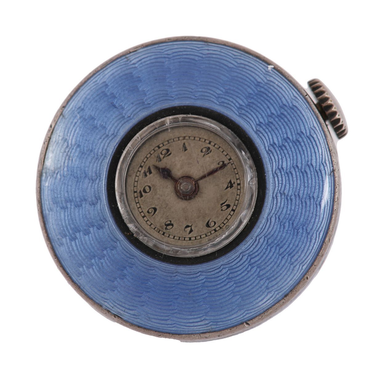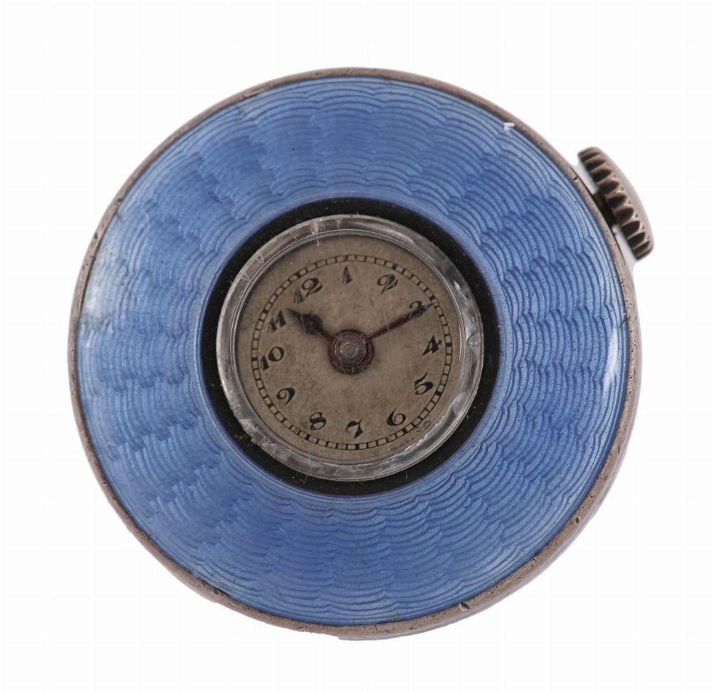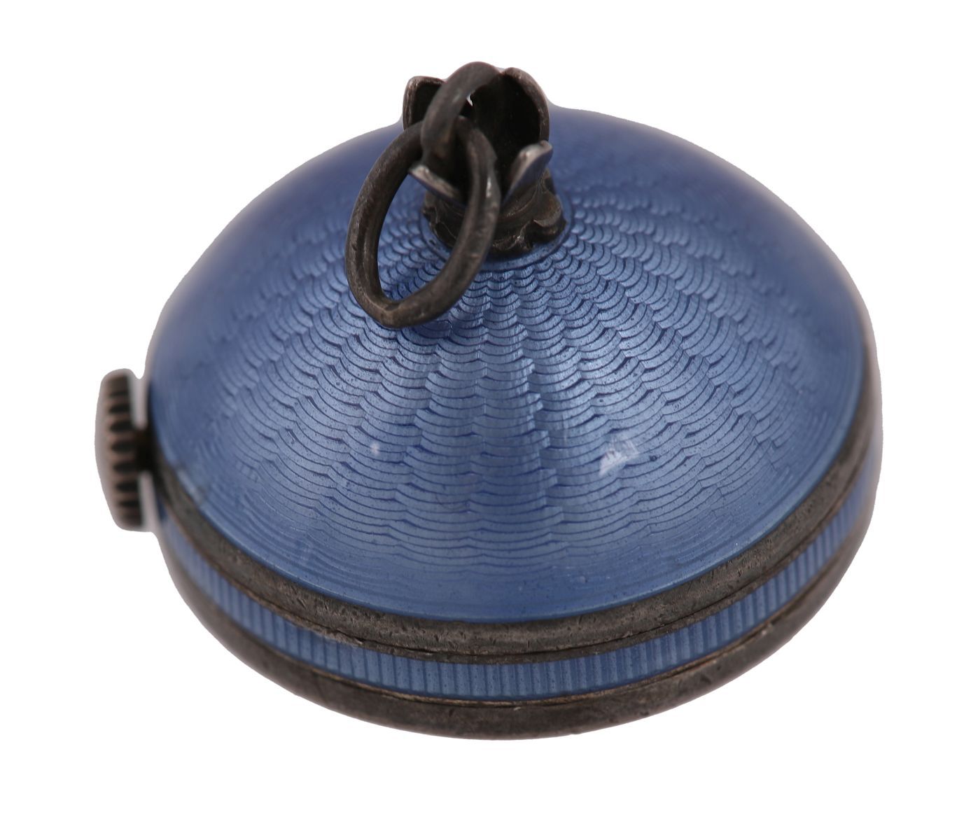 Lot 703 ANTIQUE LECOULTRE SIGNED SILVER AND GUILLOCHE ENAMEL SEMI-BALL PENDANT WATCH