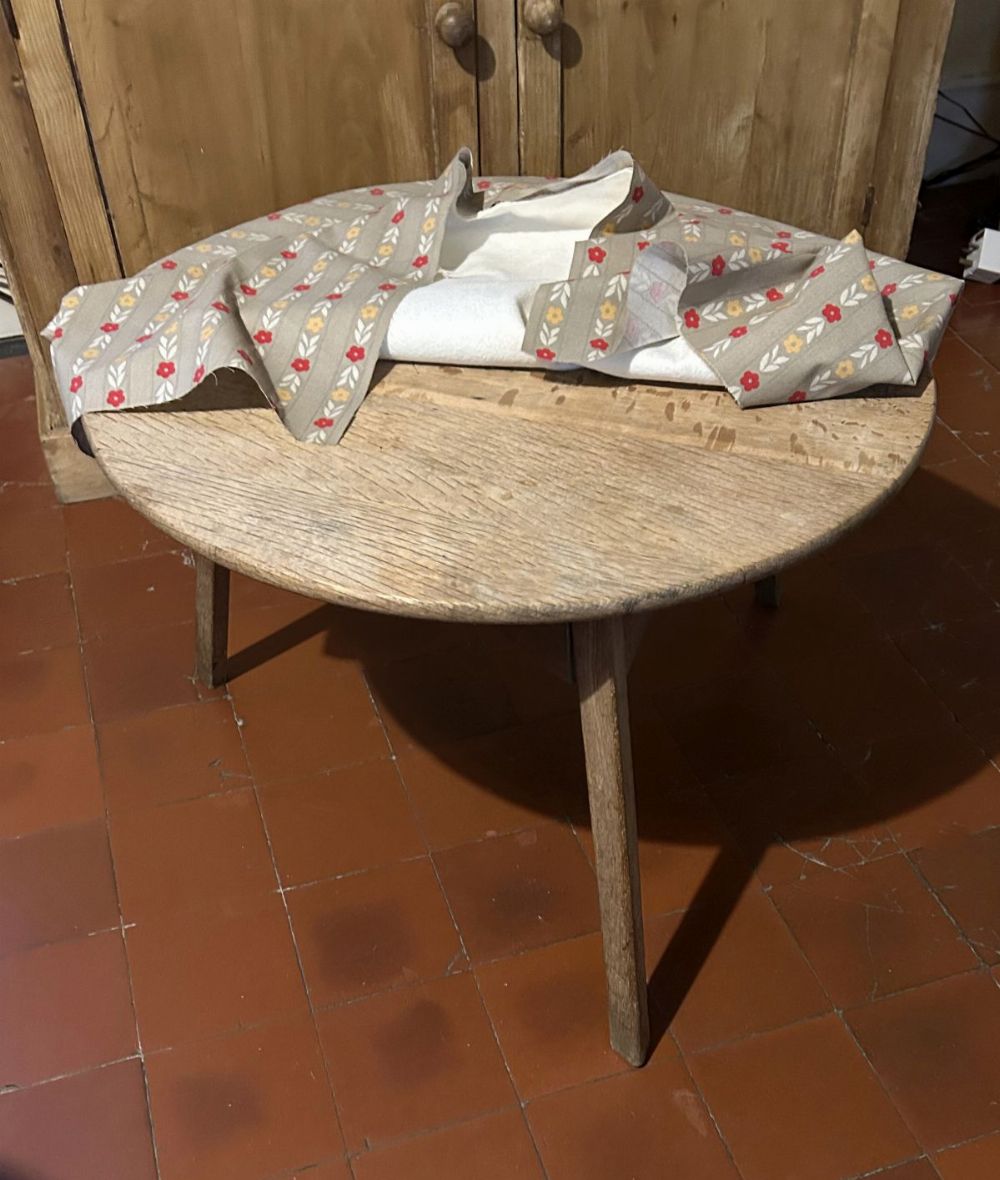 The circular top raised on a three-legged base.