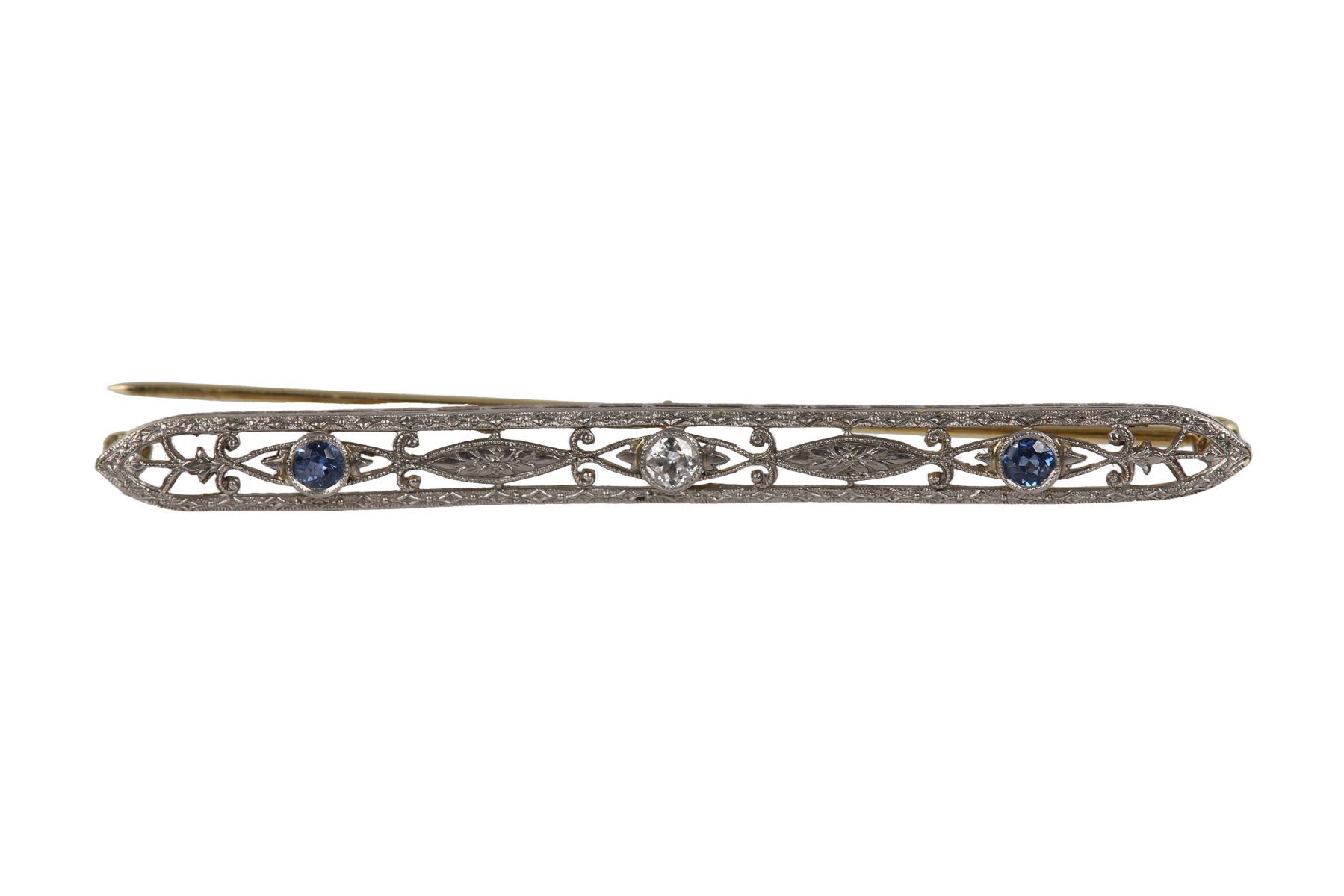 Lot 635 ART DECO SAPPHIRE AND DIAMOND BROOCH
