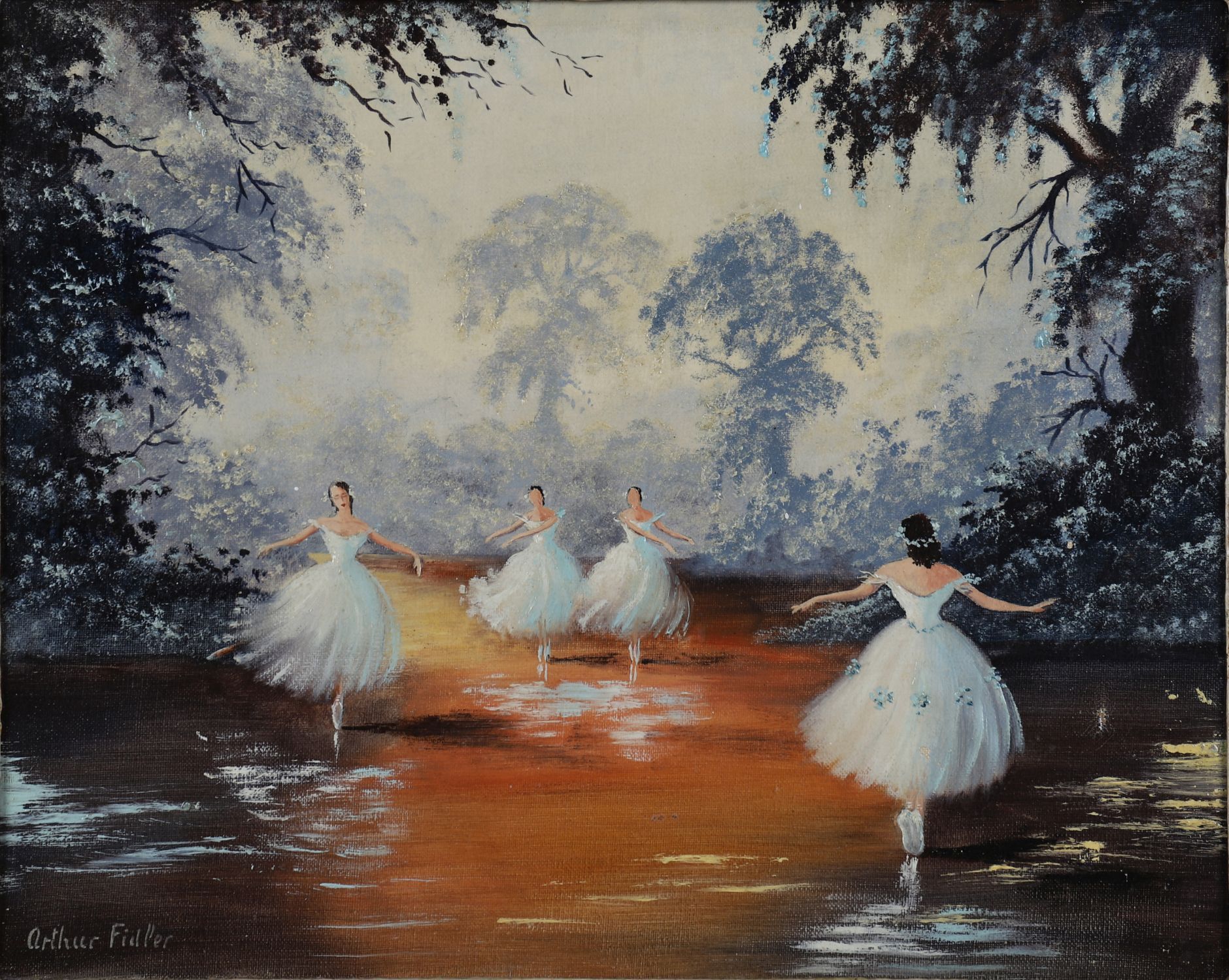 Ballerinas. Oil on canvas. Signed. Enclosed in a painted frame.