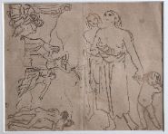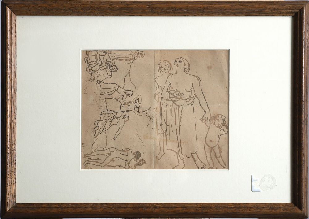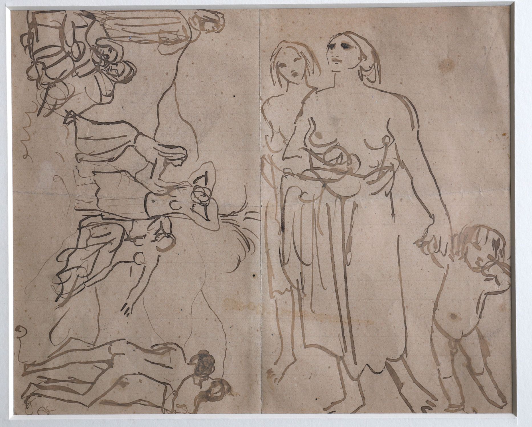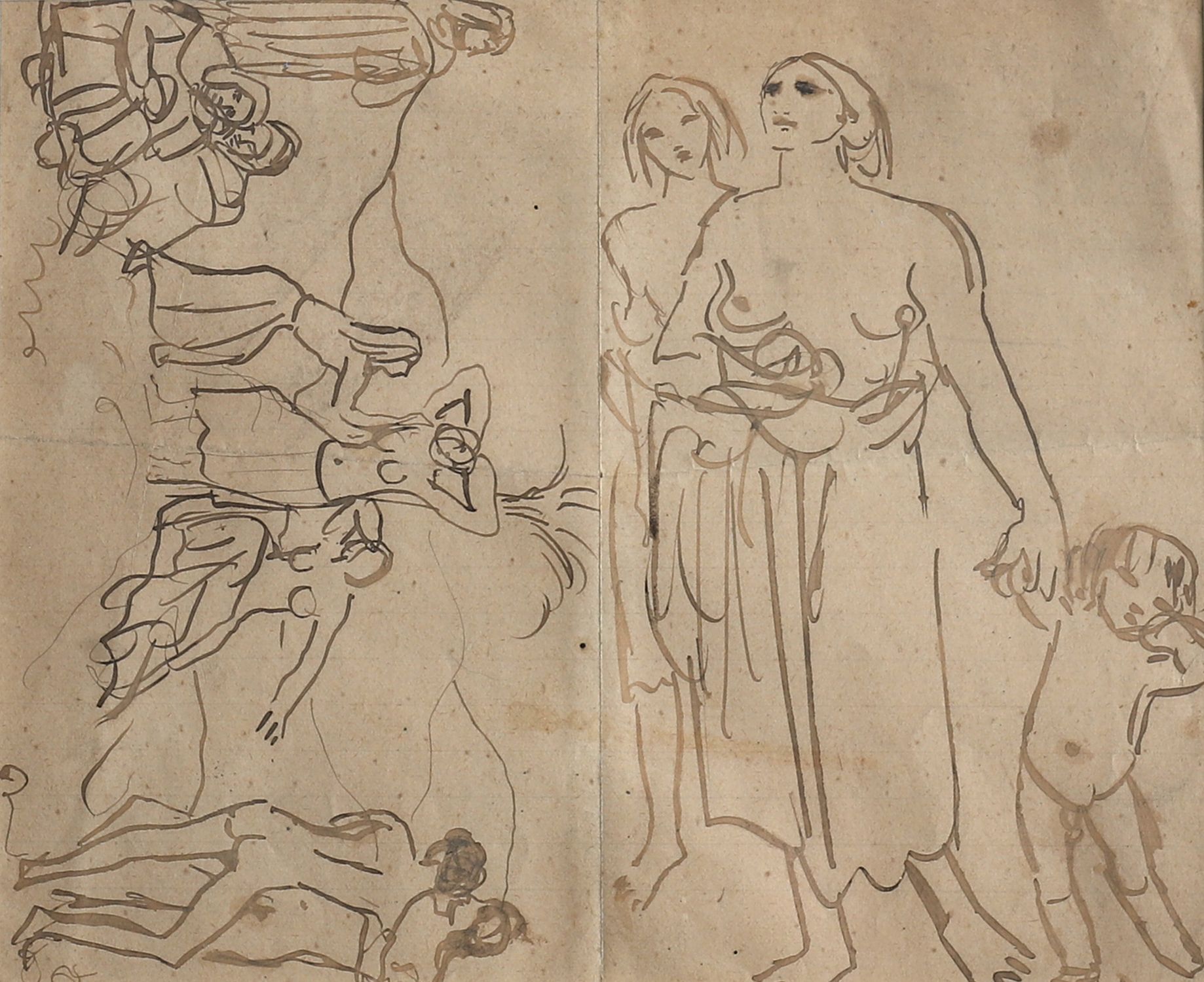 Two Studies: A Group of Women in a Landscape; Two Women and a Child. Pen & sepia ink wash. Unsigned