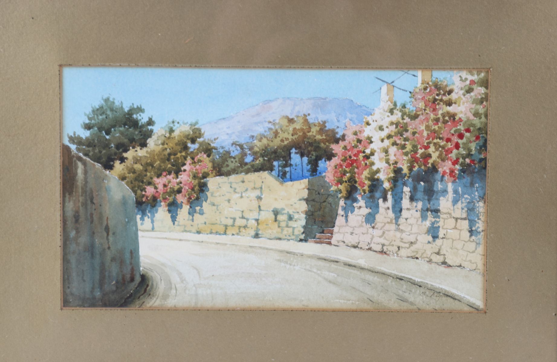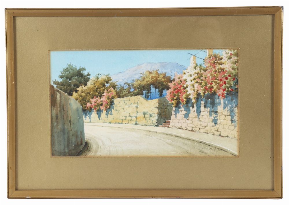 Lot 1139 B. RIGHETTY, “MEDITERRANEAN FLOWER-LINED ROADWAY WITH MOUNTAINS”