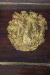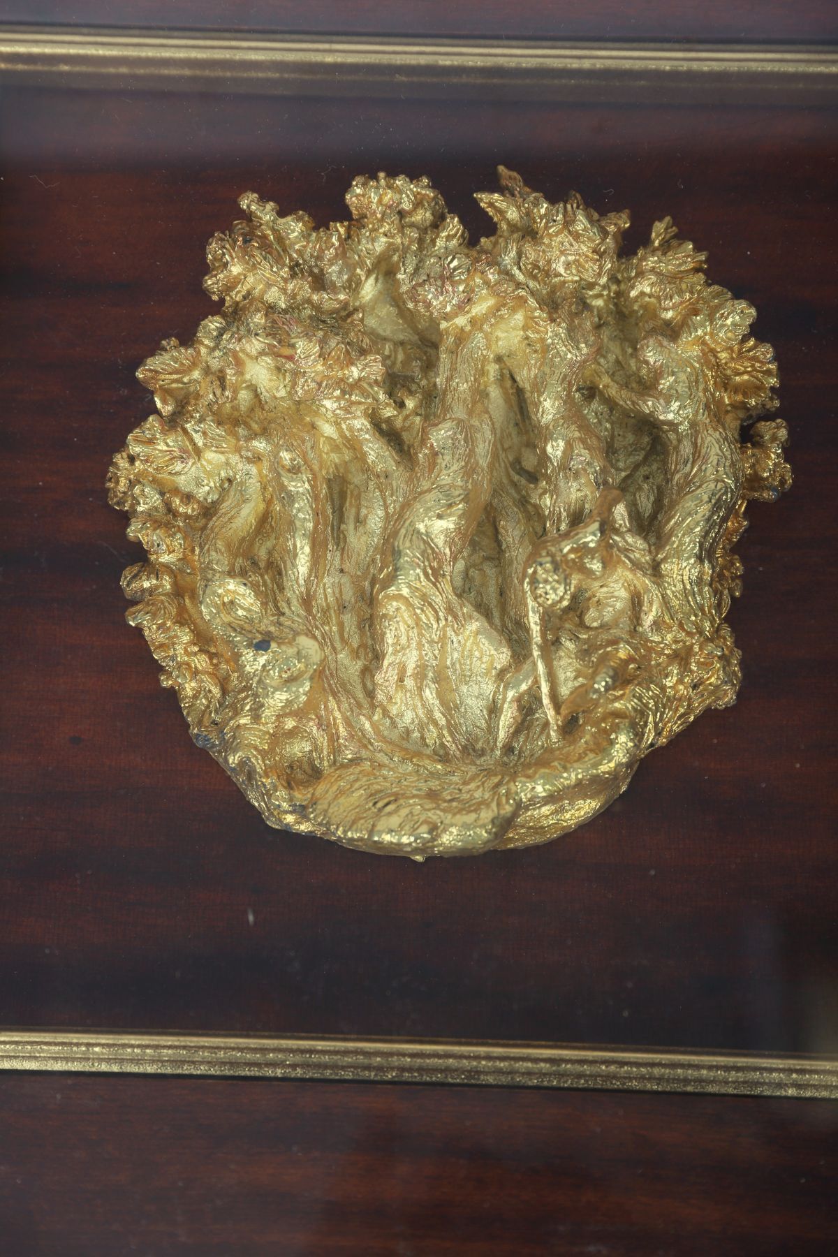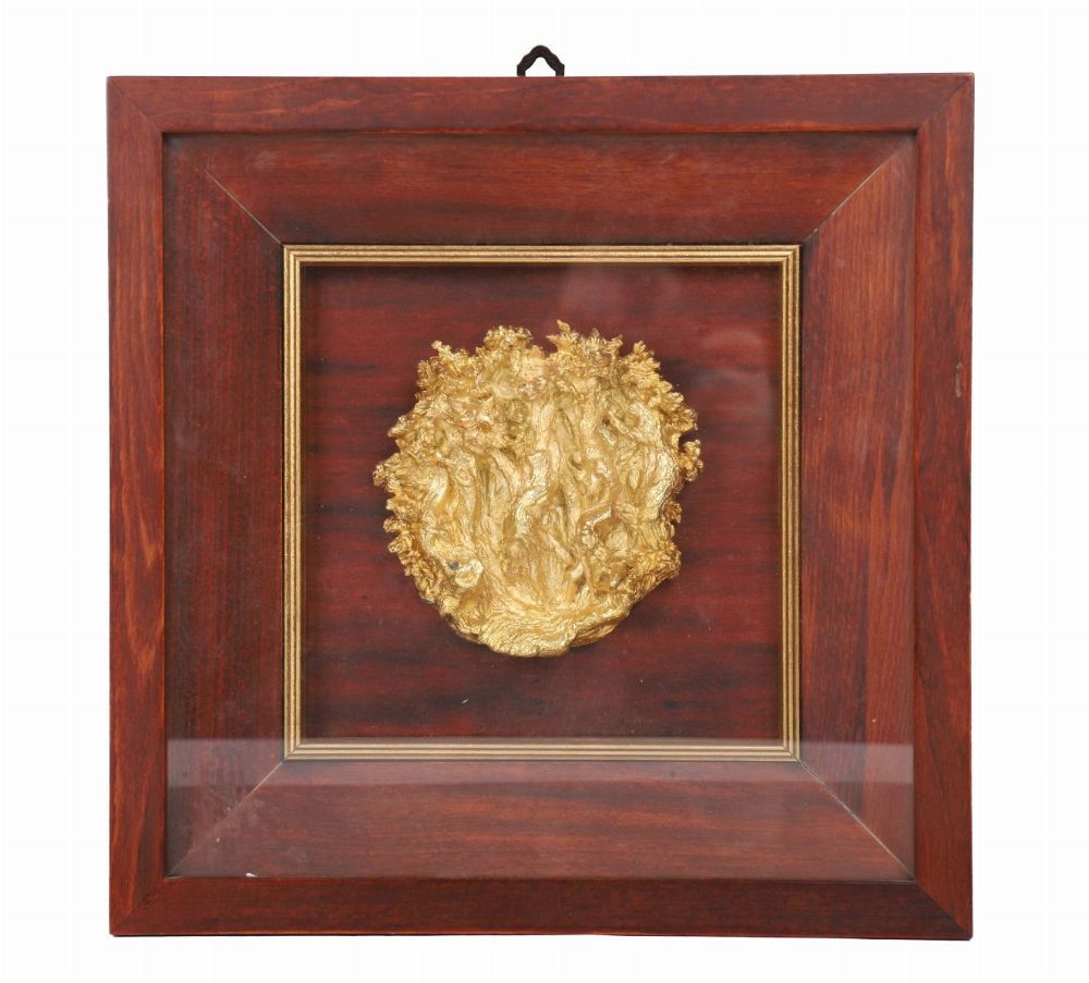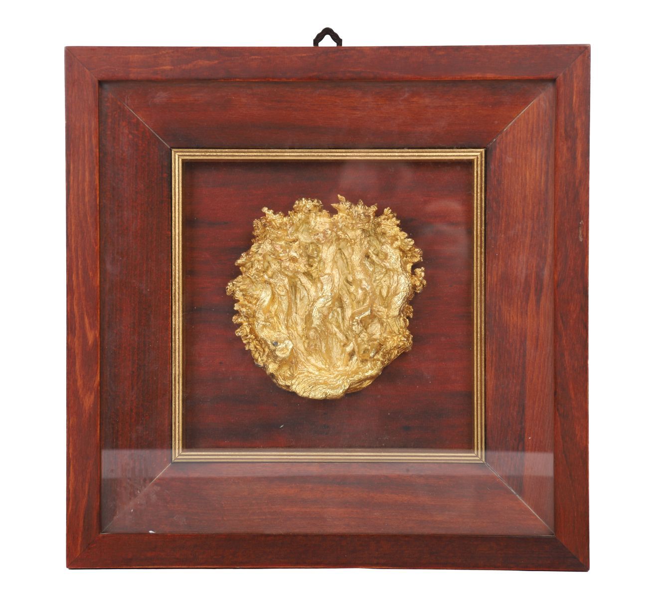 A striking gilt-cast bas-relief sculpture by Sergio Verginelli (Italian, 20th century), titled Bagnante alla Fonte, depicting a fluid, abstracted group of bathers intertwined in organic forms. Edition numbered 36/299 and signed by the artist. Created and authenticated by Di Paolo Sterling S.A.S., Milan, with accompanying certificate of authenticity dated 1979. Presented in a glazed wooden display case with gilt border.