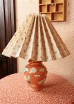 A baluster-turned vase-shaped table lamp with painted finish, fitted with a shaped fabric shade.